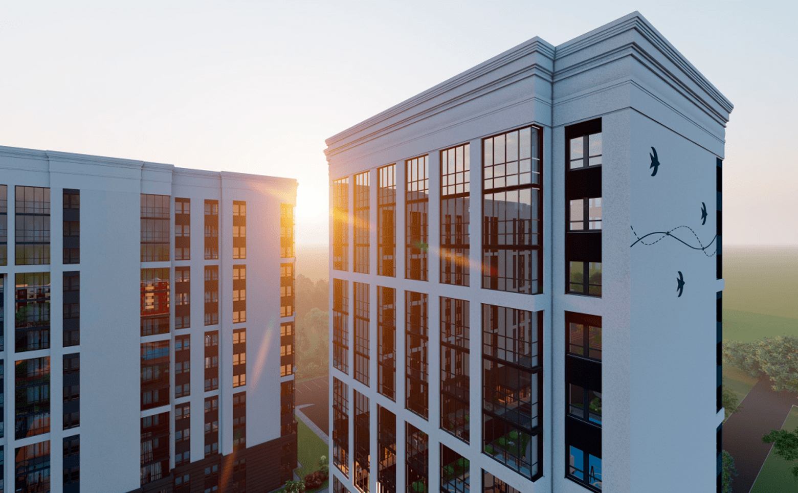 Жилой комплекс состоит из 489 квартир, где представлено множество планировочных решений: от компактных комфортных студий до просторных трехкомнатных квартир. Высота потолков — 2,7 метра. Сдаются квартиры без отделки.