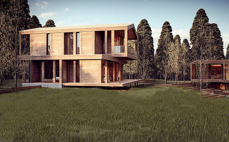 Территория поселка спланирована на 36 домовладений с единой концепцией благоустройства. Дома построены по газобетонной и брусовой технологиям. В отделке фасадов использованы панели и натуральное дерево, что придает постройкам современный и природный облик. В архитектуре сочетаются увеличенные и панорамные окна, создающие ощущение света и пространства. Высота потолков достигает 3 метров на первом этаже и до 4,5 метров на втором.