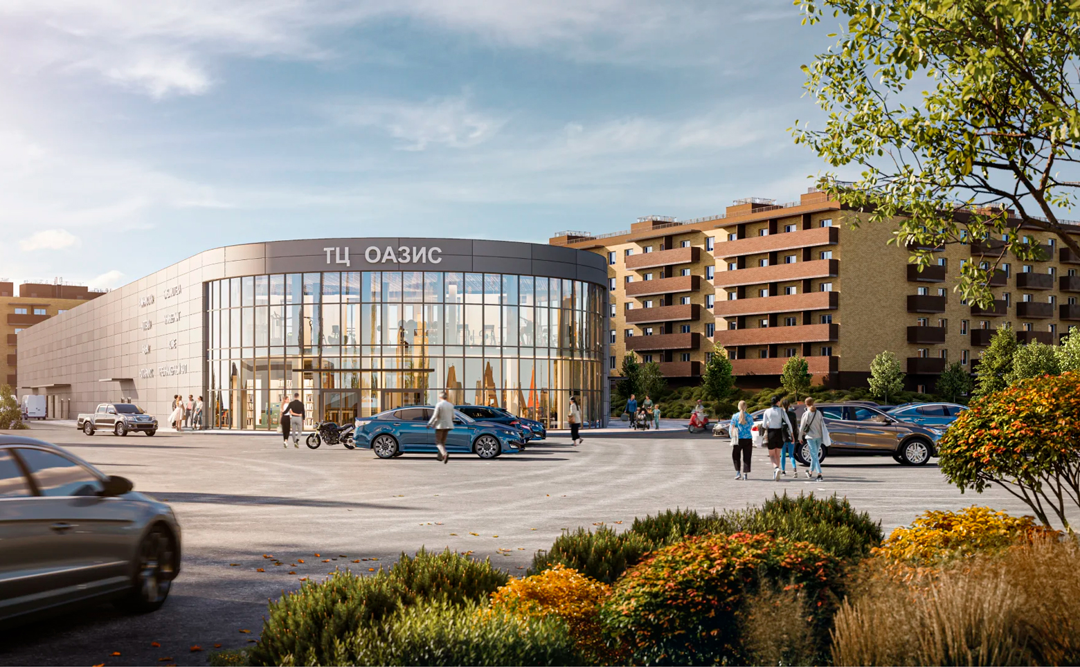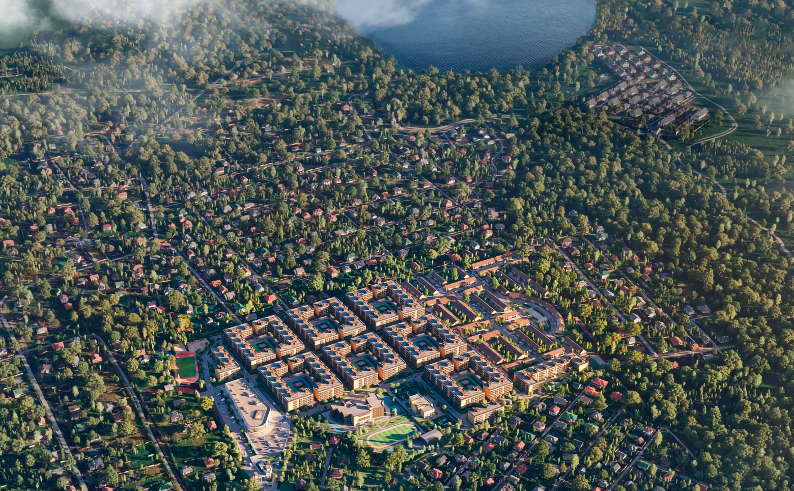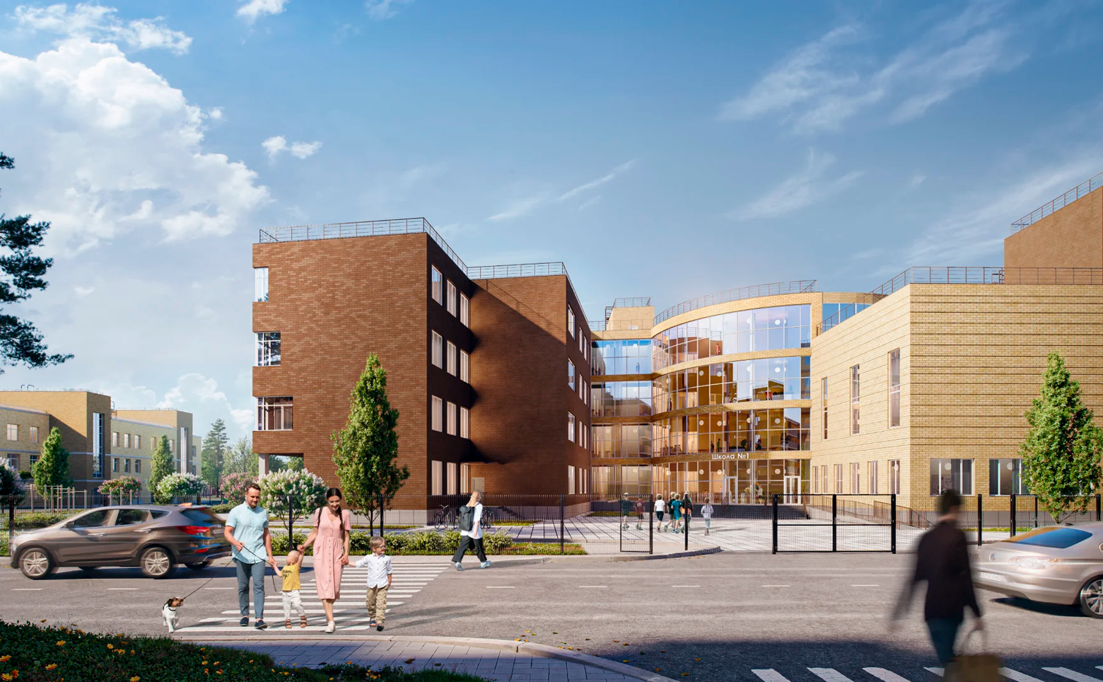 На территории жилого комплекса реализована концепция двор без машин, оборудованы детские и спортивные площадки. Для семей с детьми предусмотрены собственные школа на 400 мест и детский сад на 138 мест. На территории комплекса есть торговый центр с сетевыми магазинами, химчисткой, коворкингом, фитнес-клубом, салоном красоты, кафе и развлекательными зонами.