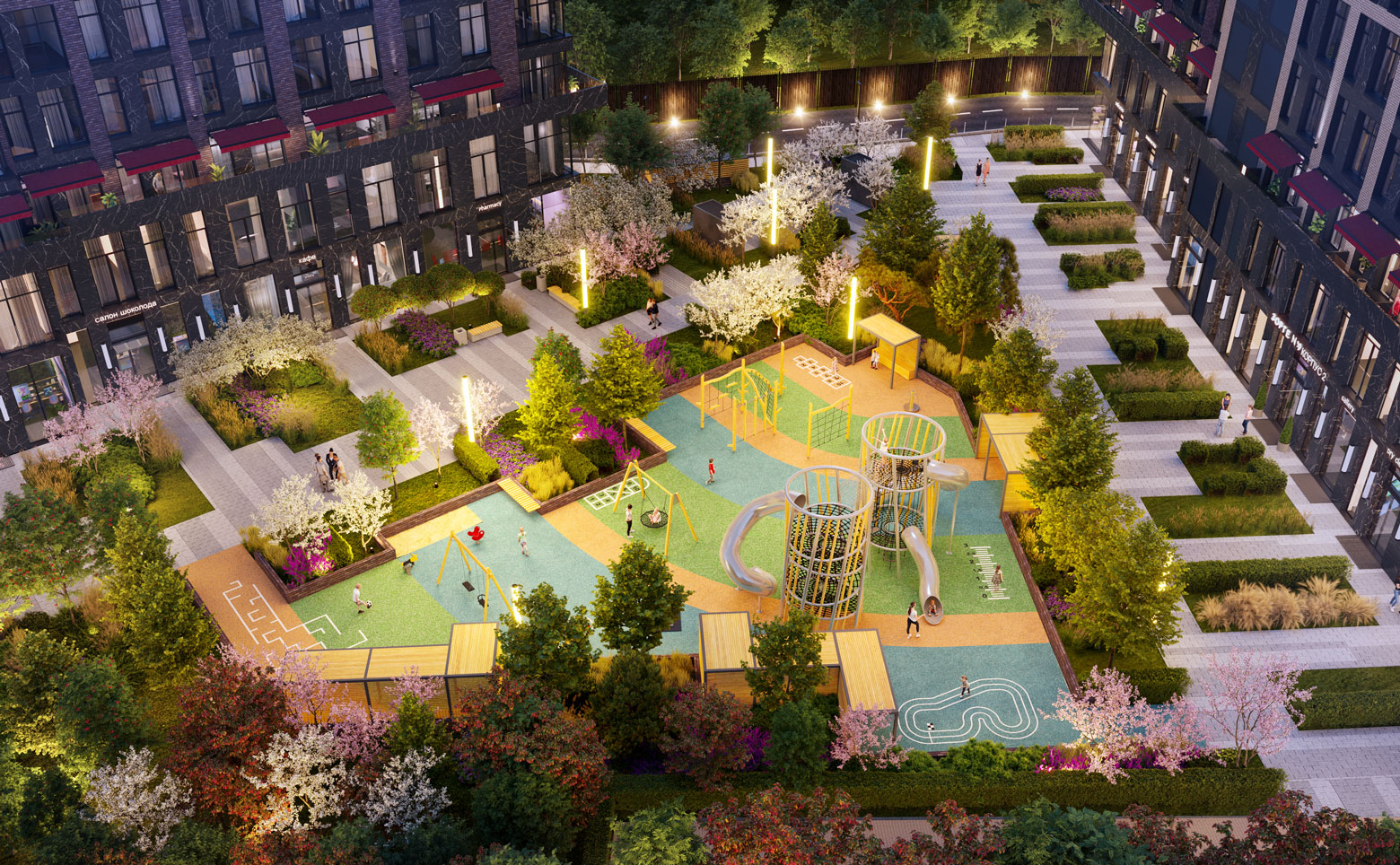Уникальный проект комплексного развития территории, объединивший не только престижное расположение, богатую инфраструктуру и доступный бюджет покупки, но и включающий в себя не имеющий аналогов музей народных промыслов и собственный ландшафтный парк. В состав комплекса входит три корпуса высотой 18-20 этажей. Дома выполнены в стиле современного Нью-Йорка. Фасад украшены панорамными окнами, французскими балконами и керамическим кирпичом в контрастных темно-светлых цветах.