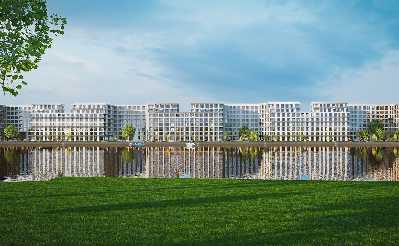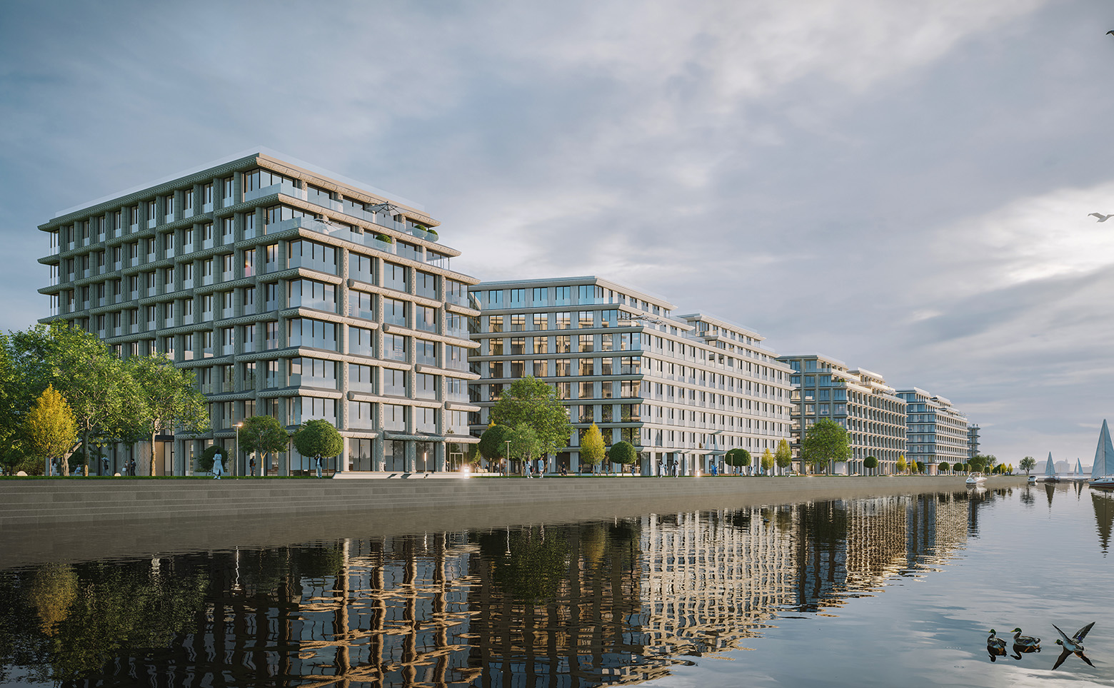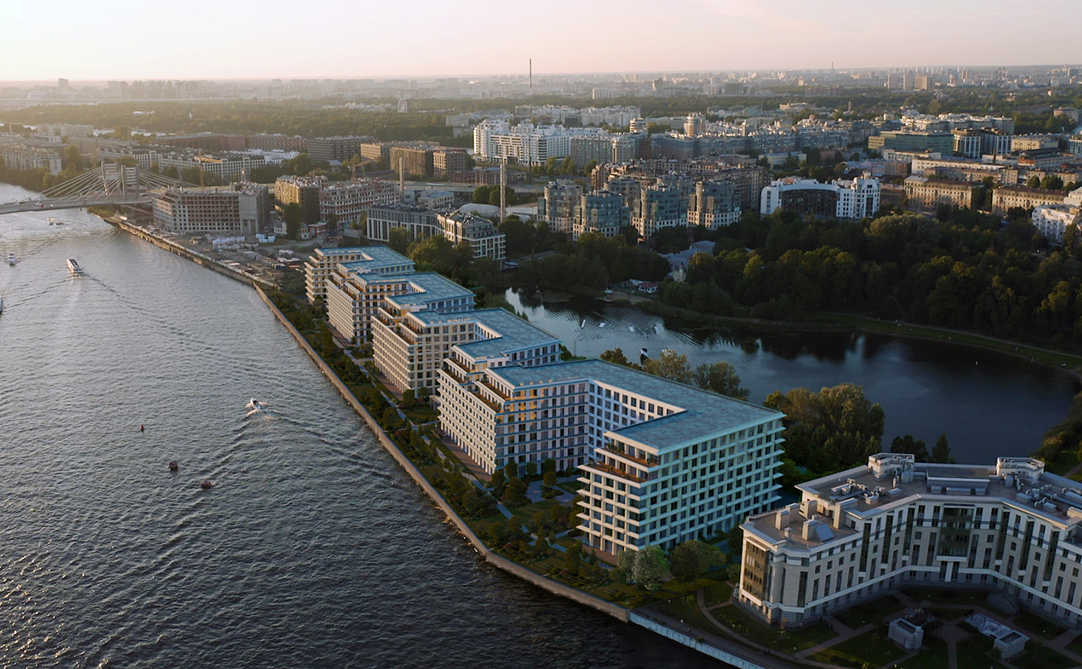 Апартаменты расположены в районе с хорошо развитой инфраструктурой, на берегу Малой Невы. В пешей доступности имеется все необходимое: продовольственные магазины, образовательные учреждения, кафе и рестораны. Дорога до метро «Спортивная» занимает 15 минут пешком.