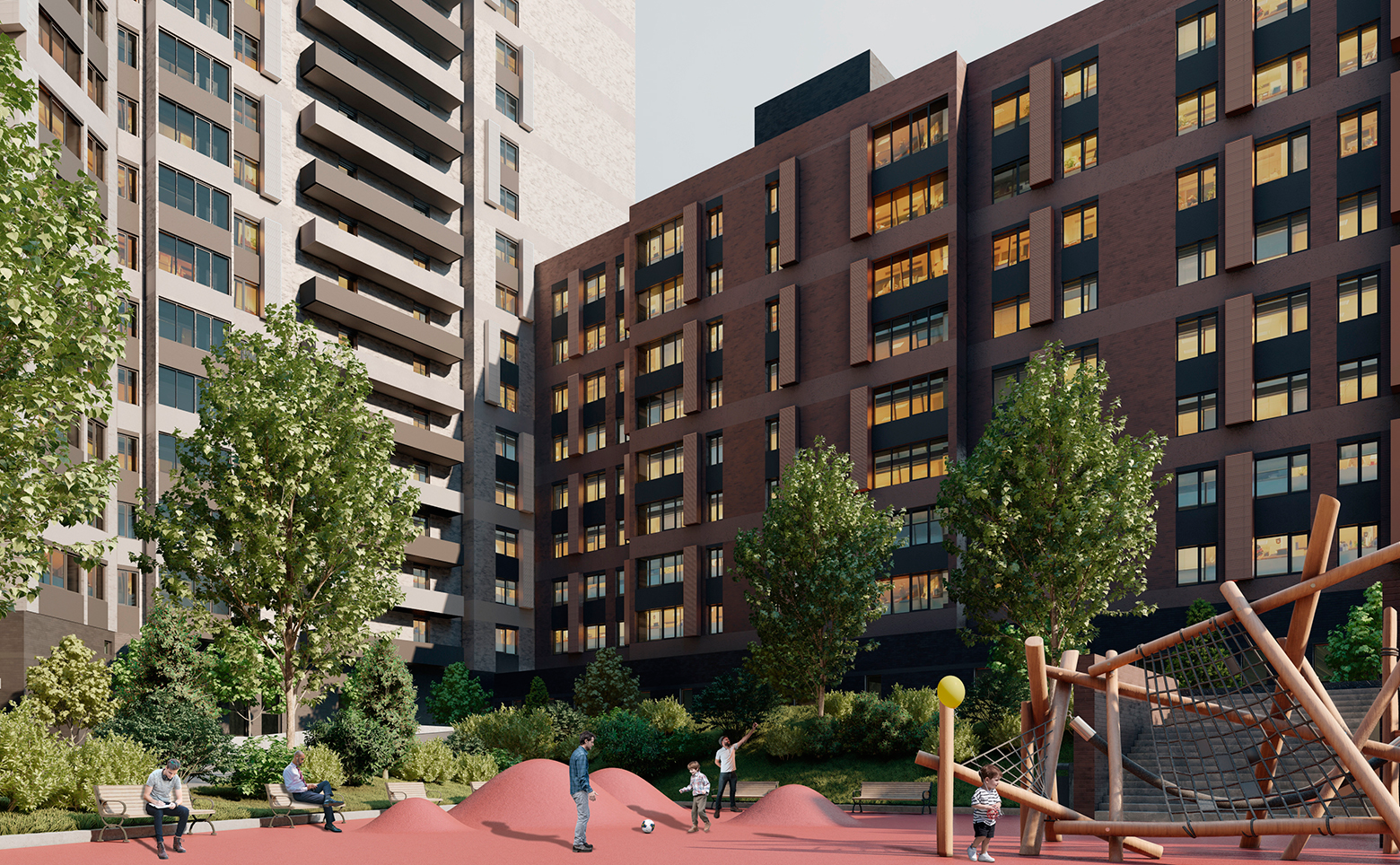 На территории проекта реализована концепция «двор без машин». В комплексе спроектирована детская площадка, зона воркаута, места для отдыха и прогулок, имеется зона коворкинга. Для владельцев автомобилей предусмотрен подземный паркинг.