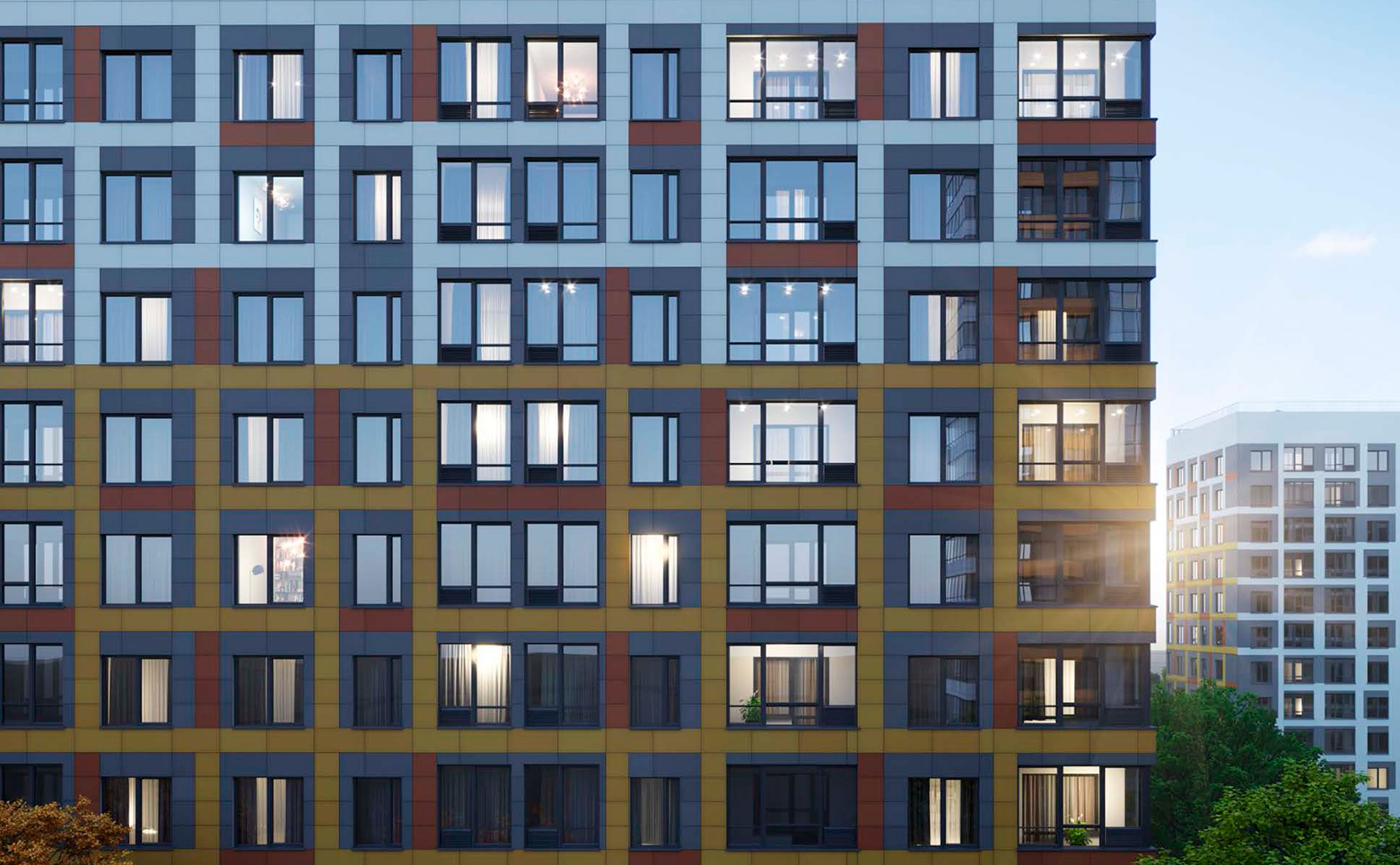 Проект построен по долговечной кирпично-монолитной технологии строительства. Навесные фасады выполнены из плит керамогранита по навесной вентилируемой системе со скрытым креплением и фасонными элементами металлических кассет. В декоративном оформлении фасадов использовано сочетание различных цветов: темно- и светло-серый, белый, терракотовый и цвет светлой охры. Основной фон украшен пересекающимися цветными полосами. В домах выполнена дизайнерская отделка светопрозрачных входных групп и установлены современные лифты KONE. Вход осуществляется с уровня земли.