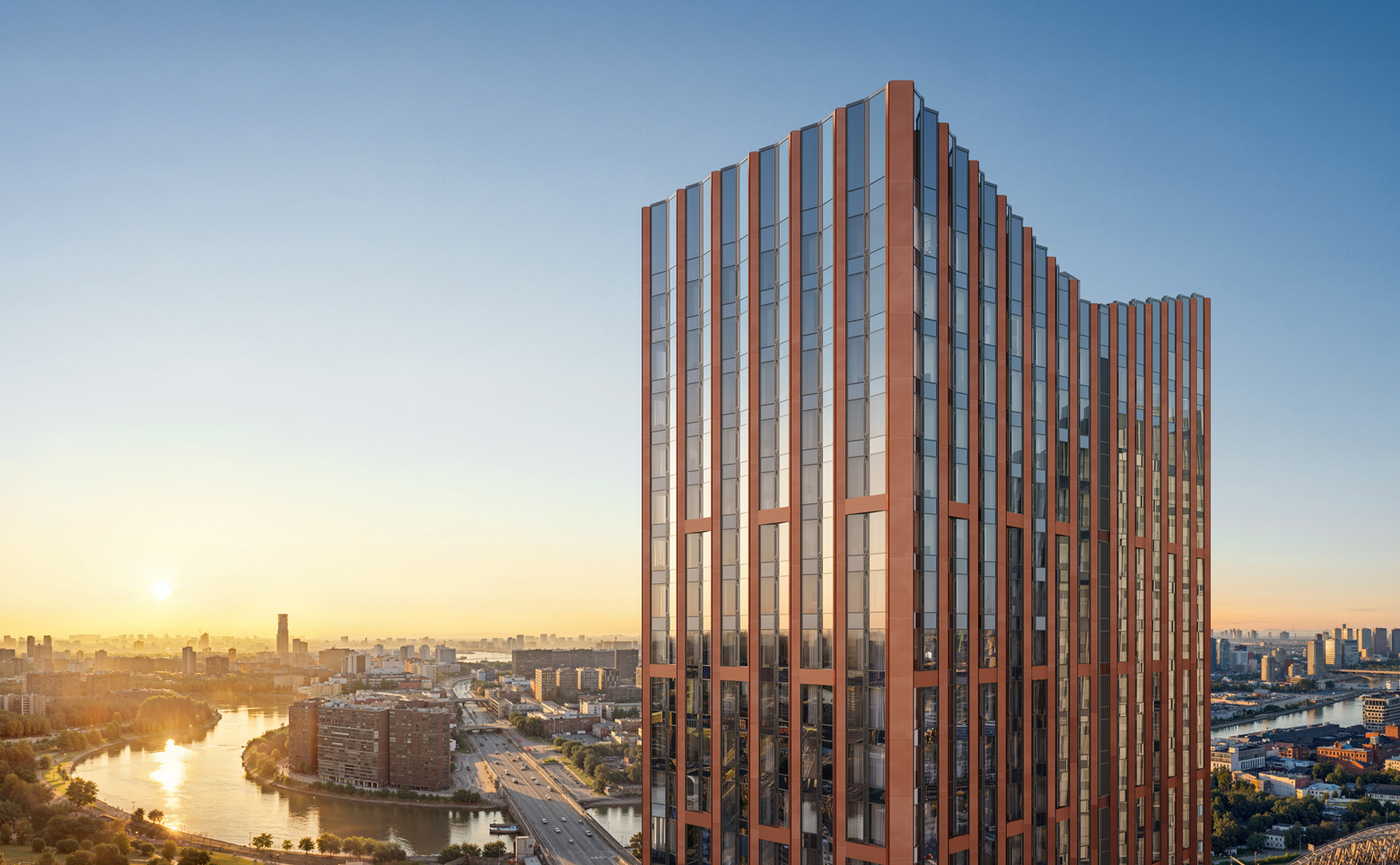 Комплекс включает в себя два жилых небоскреба: 41-этажную Серебряную башню и 42-этажную Бронзовую башню. Также в состав комплекса входит 27-этажный бизнес-центр. Здания построены по монолитной технологии и облицованы фасадными панелями. Минималистичный дизайн лобби был разработан бюро BABAYNTS и выполнен в светлых тонах. Лобби состоит из общественной гостиной на двух уровнях, которая имеет выход во внутренний двор комплекса, и лаунж-зоны с мягкой мебелью. В каждой секции предусмотрены колясочные и лапомойки. В продолжении велком-зоны находятся кофейни, пекарня, комнаты отдыха, переговорные и коворкинг-пространство.