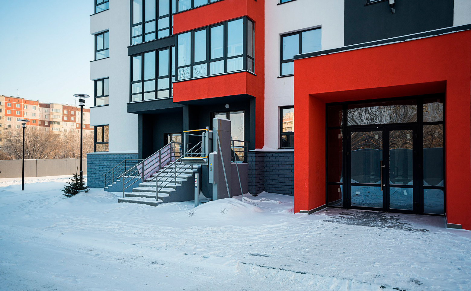 Жилой комплекс представляет собой 4 корпуса. В домах выполнена дизайнерская отделка входных групп и установлены современные лифты.