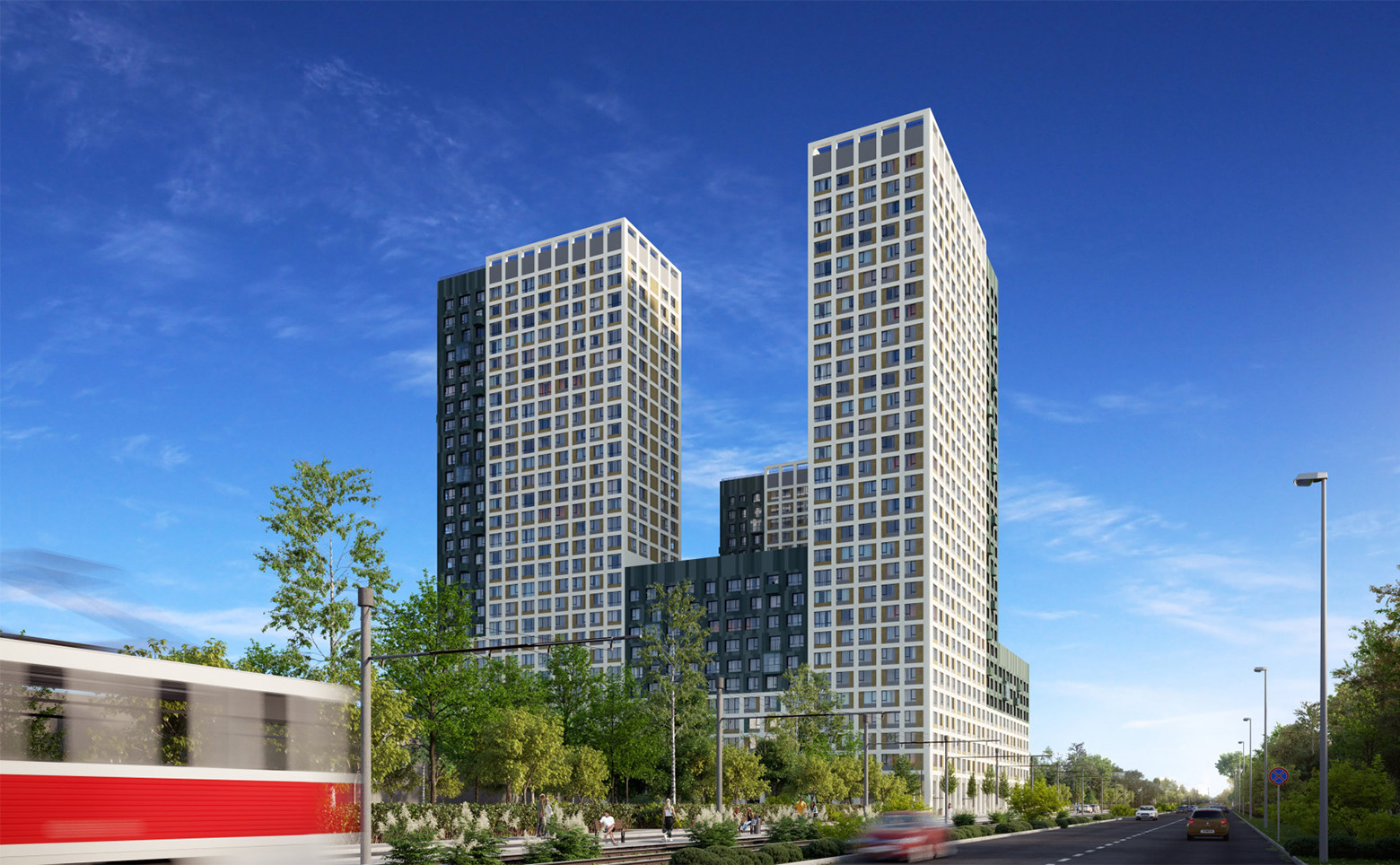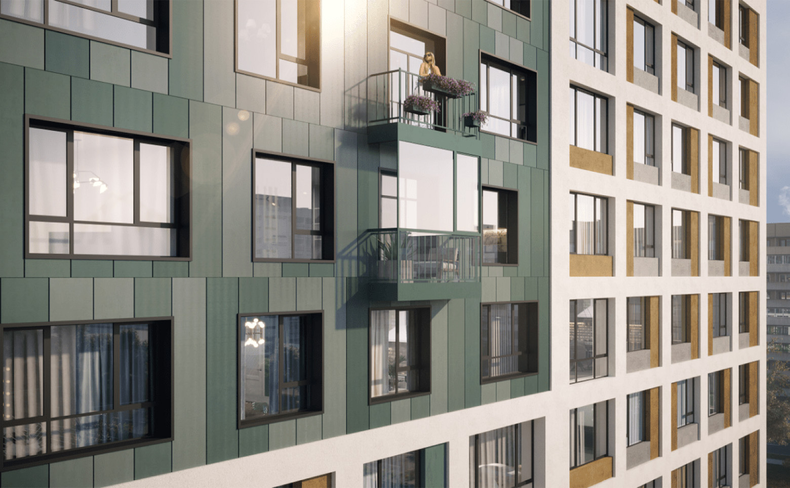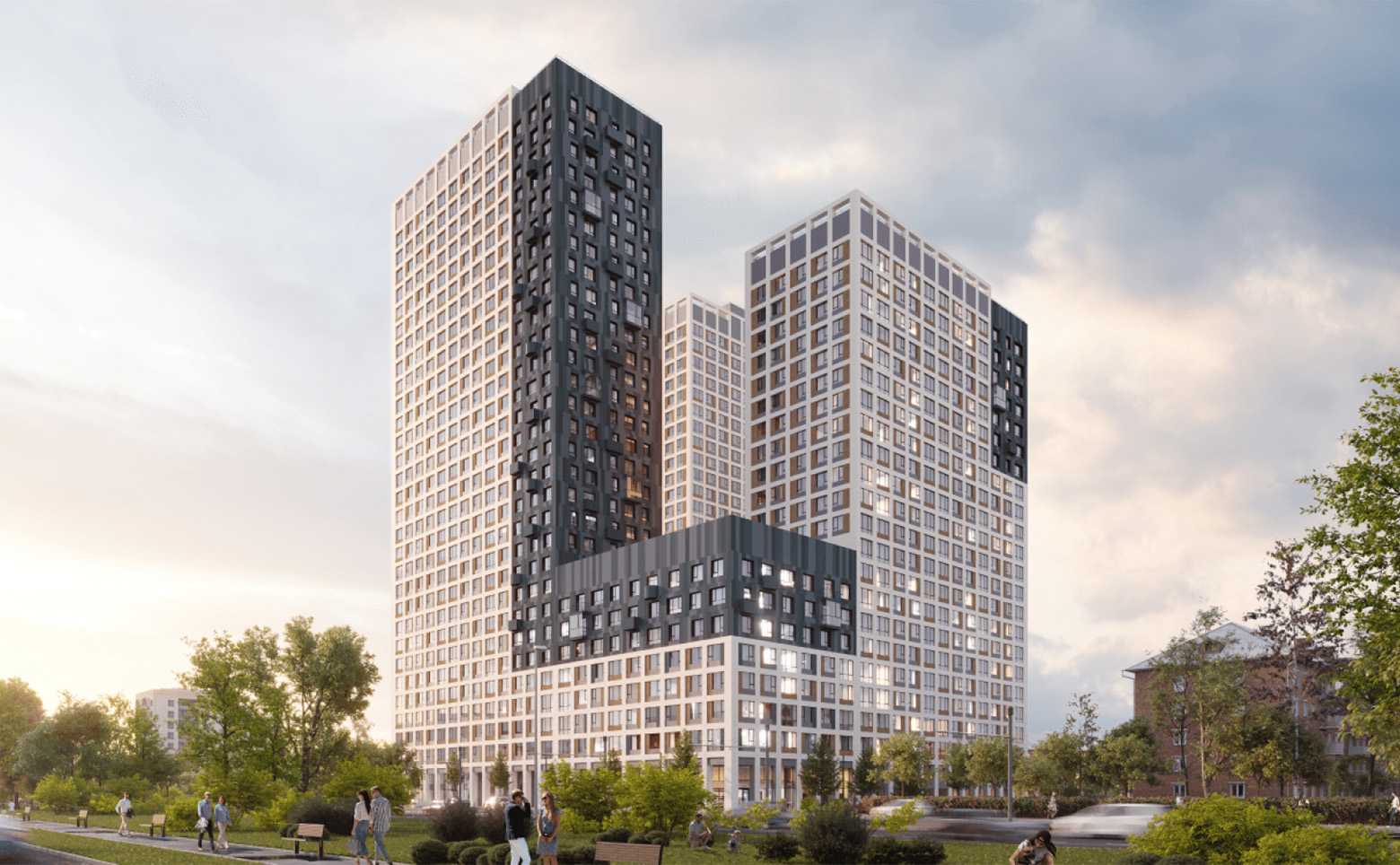 Первая очередь жилого комплекса — это два дома от 8 до 23 этажей, вторая — еще два дома высотой от 12 до 31 этажей, третья — дом-башня высотой 30 этажей. Дома возводятся по долговечной кирпично-монолитной технологии. Фасады выполнены из навесных панелей и штукатурки в сдержанных светлых и глубоких зеленых тонах. В проекте выполнена дизайнерская отделка входных групп, установлены современные скоростные лифты. Келлеры располагаются на уровне паркинга.