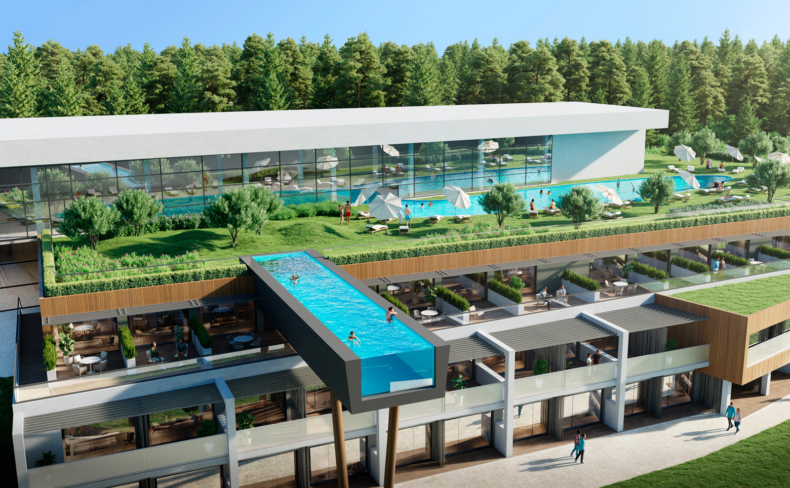 На территории комплекса расположены круглогодичные бассейны, кафе, рестораны, детский центр, прямой выход к пляжу. Для владельцев автомобилей предусмотрен подземный паркинг.