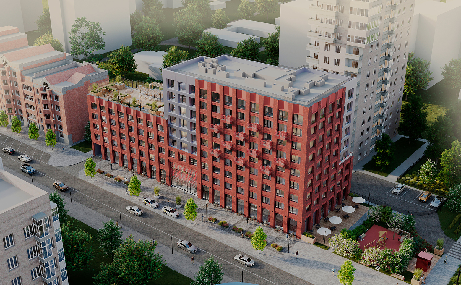 Жилой комплекс представляет собой 8 этажный дом. Возводится по долговечной кирпично-монолитной технологии строительства с фасадами, облицованными штукатуркой. На первом этаже расположена колясочная с мойкой. Установлен пассажирский лифт.