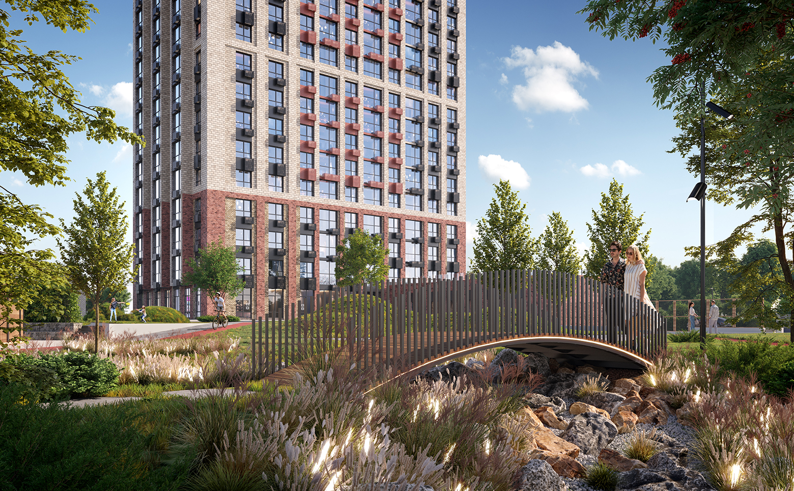 Проект включает 5 корпусов переменной этажности от 15 до 24 этажей, возводимых по долговечной монолитной технологии. Фасады облицованы кирпичом, входные группы выполнены с дизайнерской отделкой, установлены современные скоростные лифты.