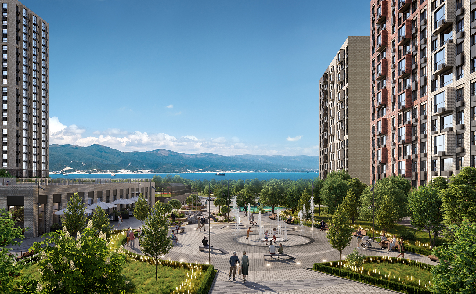 Проект объединяет продуманные зоны отдыха и площадки для спорта, прогулочный бульвар, беседки и уникальные арт-объекты. Территория закрыта от автомобилей и находится под круглосуточной охраной и видеонаблюдением. Для автовладельцев предусмотрен отдельный многоуровневый паркинг. В составе комплекса запланировано строительство современной школы на 1 750 мест и детского сада на 380 мест. Еще одной точкой притяжения станет гостиница с акватермальным комплексом и теплым инфинити-бассейном с видом на море.