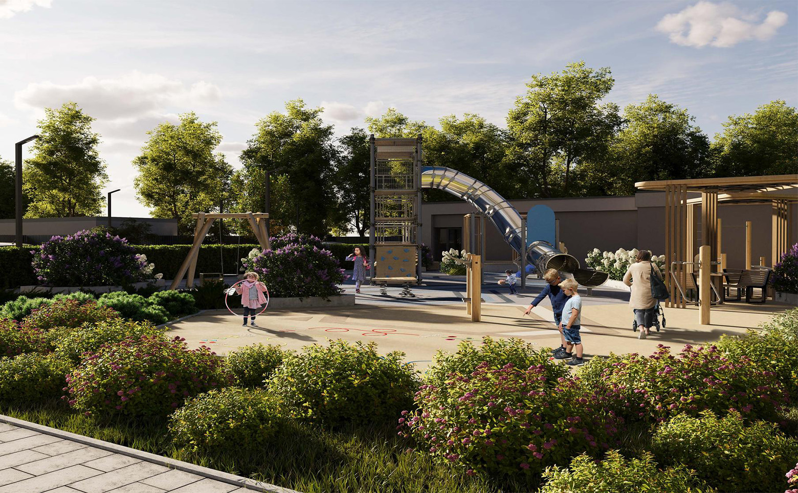 Территория проекта полностью огорожена и снабжена пропускной системой — калитки с электронным доступом, круглосуточный пост охраны и камеры видеонаблюдения. В доме предусмотрен соседский цент с многофункциональным пространством для жильцов, который является местом встреч и общения, а для детей — детская площадка. Коммерческие помещения располагаются на первом этаже жилого комплекса. Для владельцев автомобилей предусмотрены подземный паркинг и стоянка.