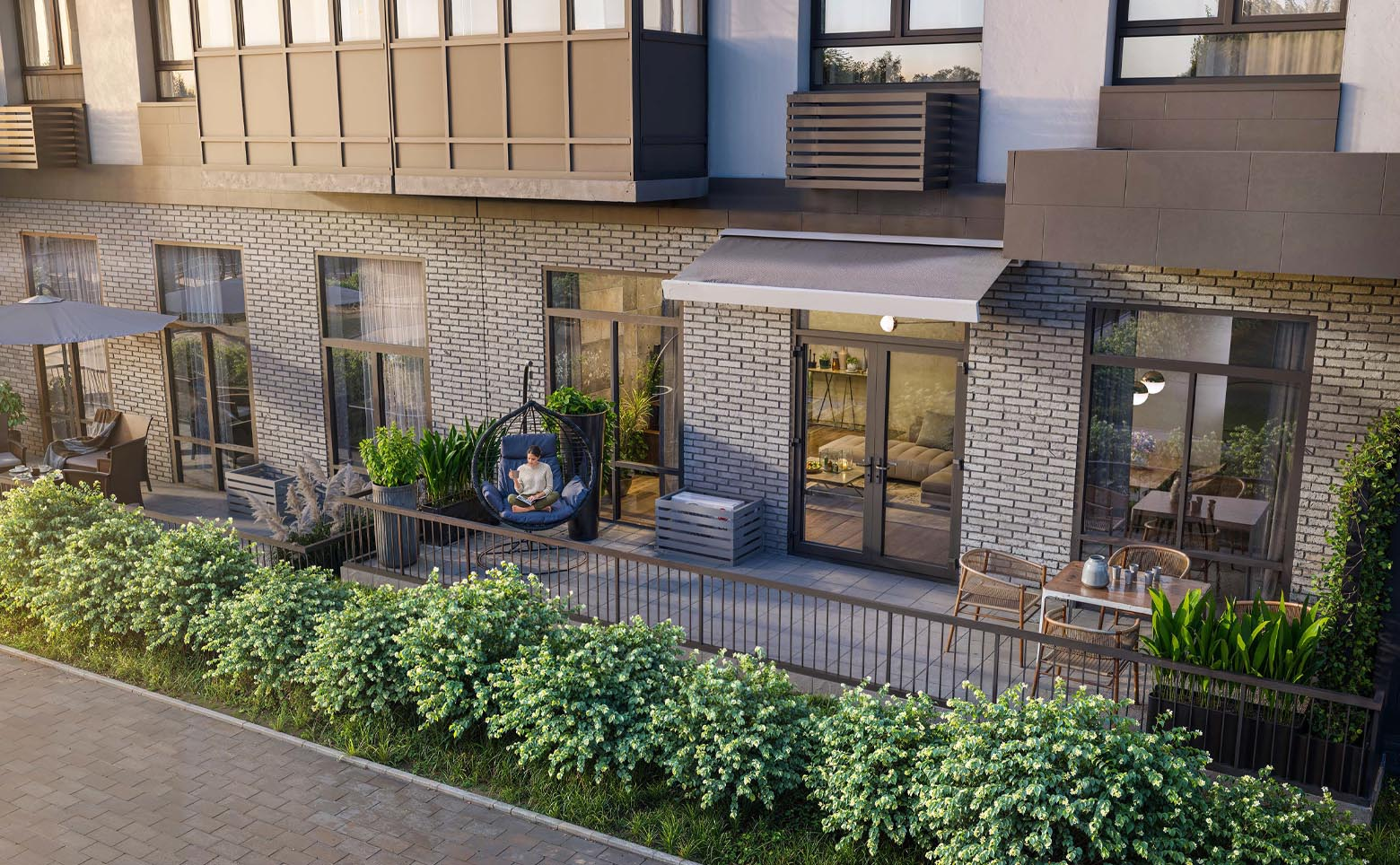 В проекте предлагается всего 95 квартир: студии и квартиры евроформата с 1–3 комнатами и кухней-гостиной. Площадь жилья варьируется от 28 до 92 кв. м. В помещениях установлены увеличенные окна на 2–5 этажах и панорамные на 1 этаже. Высота потолков варьируется от 2,72 до 4,22 м. Предусмотрены планировки с балконами и открытыми террасами. Квартиры передаются без стен, что позволяет владельцам создать индивидуальное пространство.