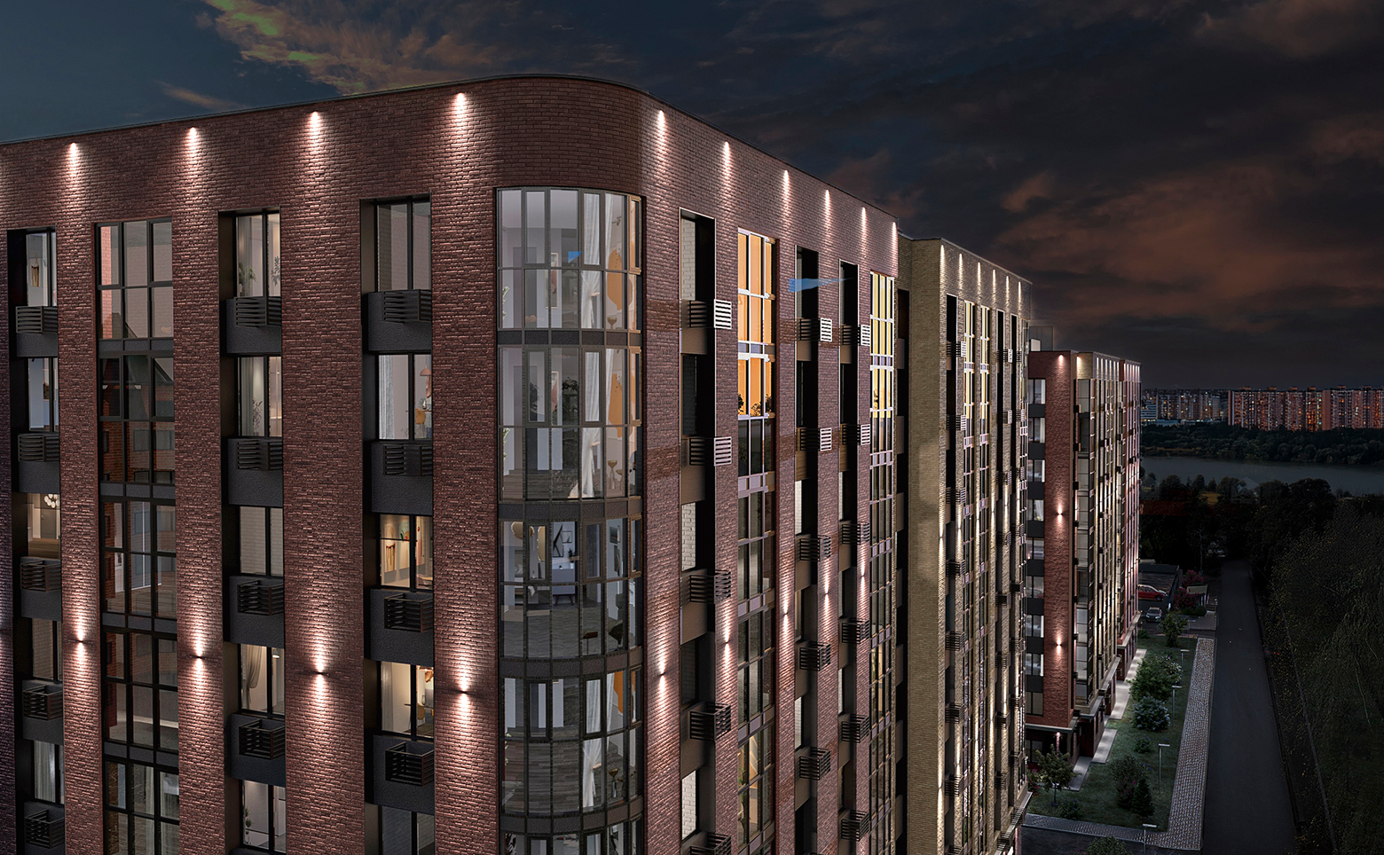 Жилой комплекс выполнен по кирпично-монолитной технологии с использованием комбинированных материалов в облицовке фасадов. Архитектура органично вписана в природный ландшафт, здания оснащены пассажирскими и грузовыми лифтами.