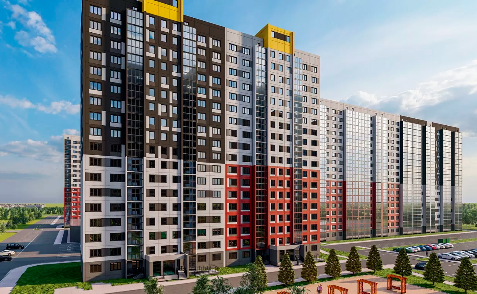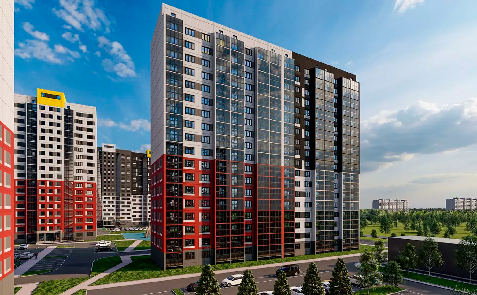 Жилой комплекс состоит из 63 корпусов переменной этажности. В облицовке здания используется штукатурка белого и серого цвета с яркими цветными элементами. В домах выполнена дизайнерская отделка входных групп, установлены современные лифты.