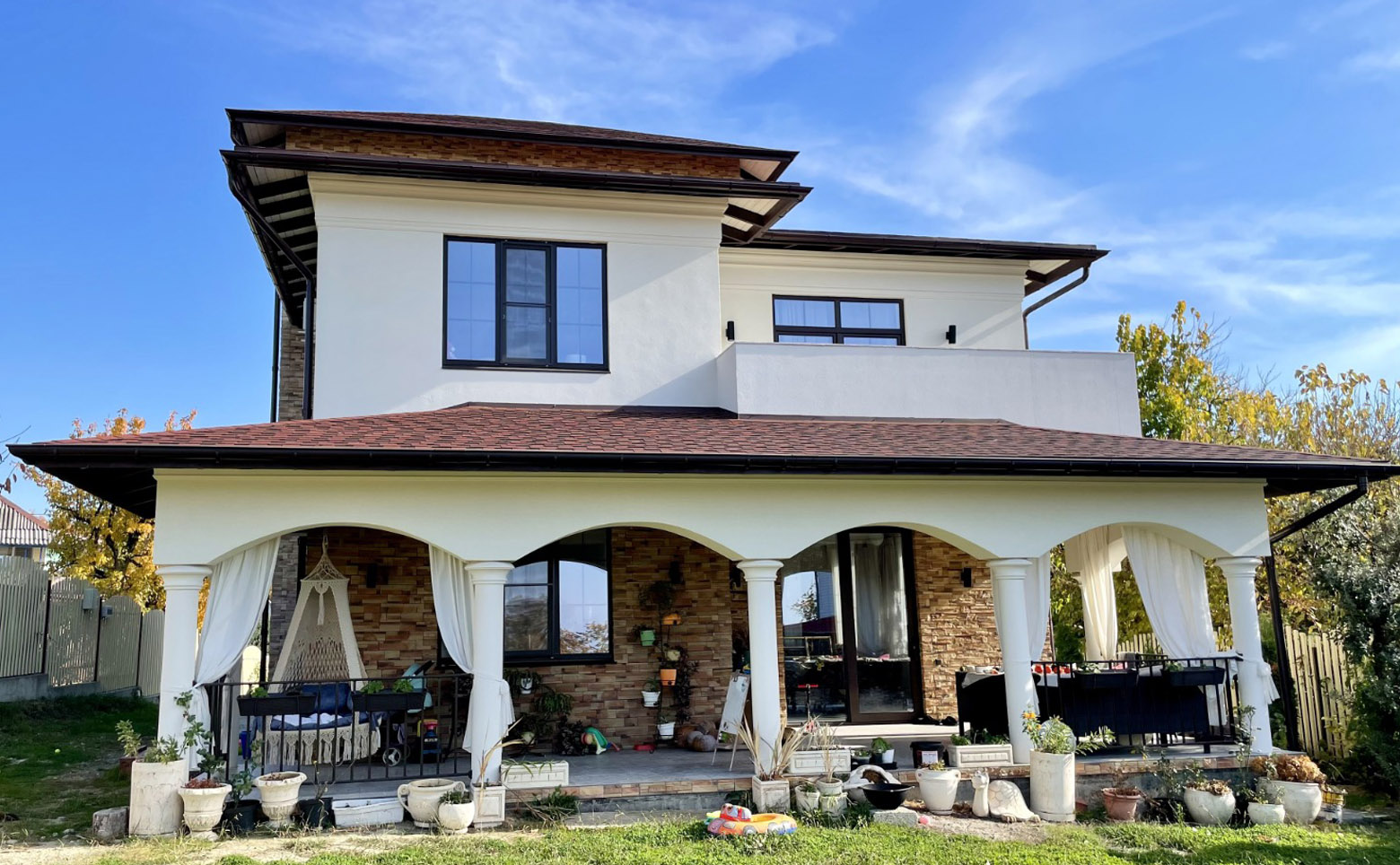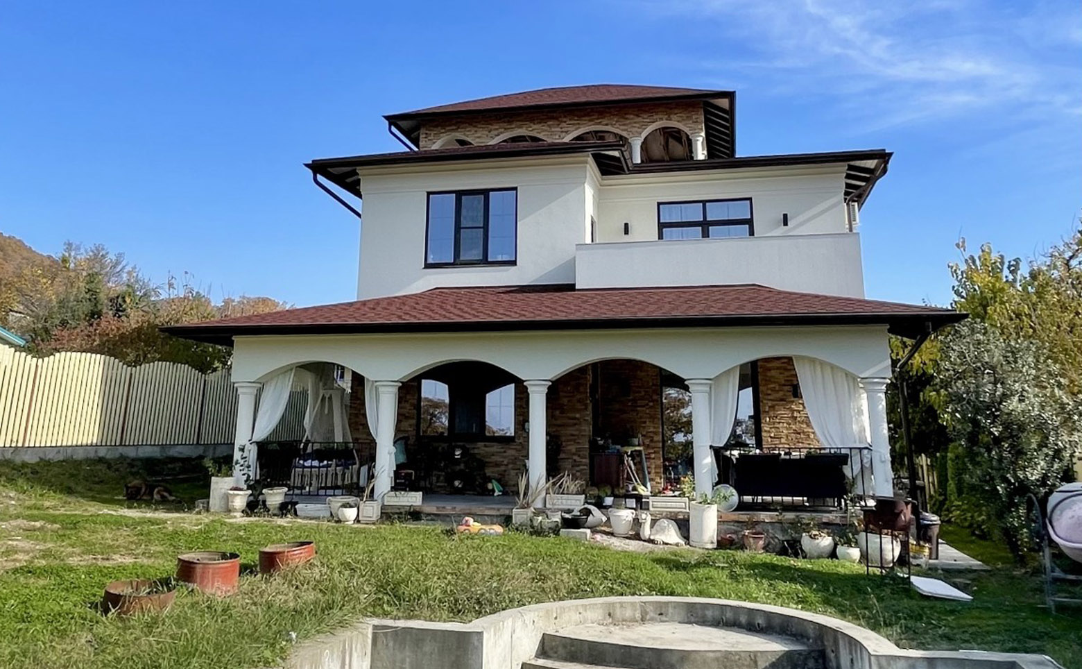 Проект представлен участком площадью 15 соток с готовым домом высотой 3 этажа. Земля имеет вид разрешенного использования земли ИЖС, предусмотрена возможность оформления постоянной регистрации. Дом возведен по монолитной технологии с использованием комбинированных материалов в отделке фасадов.