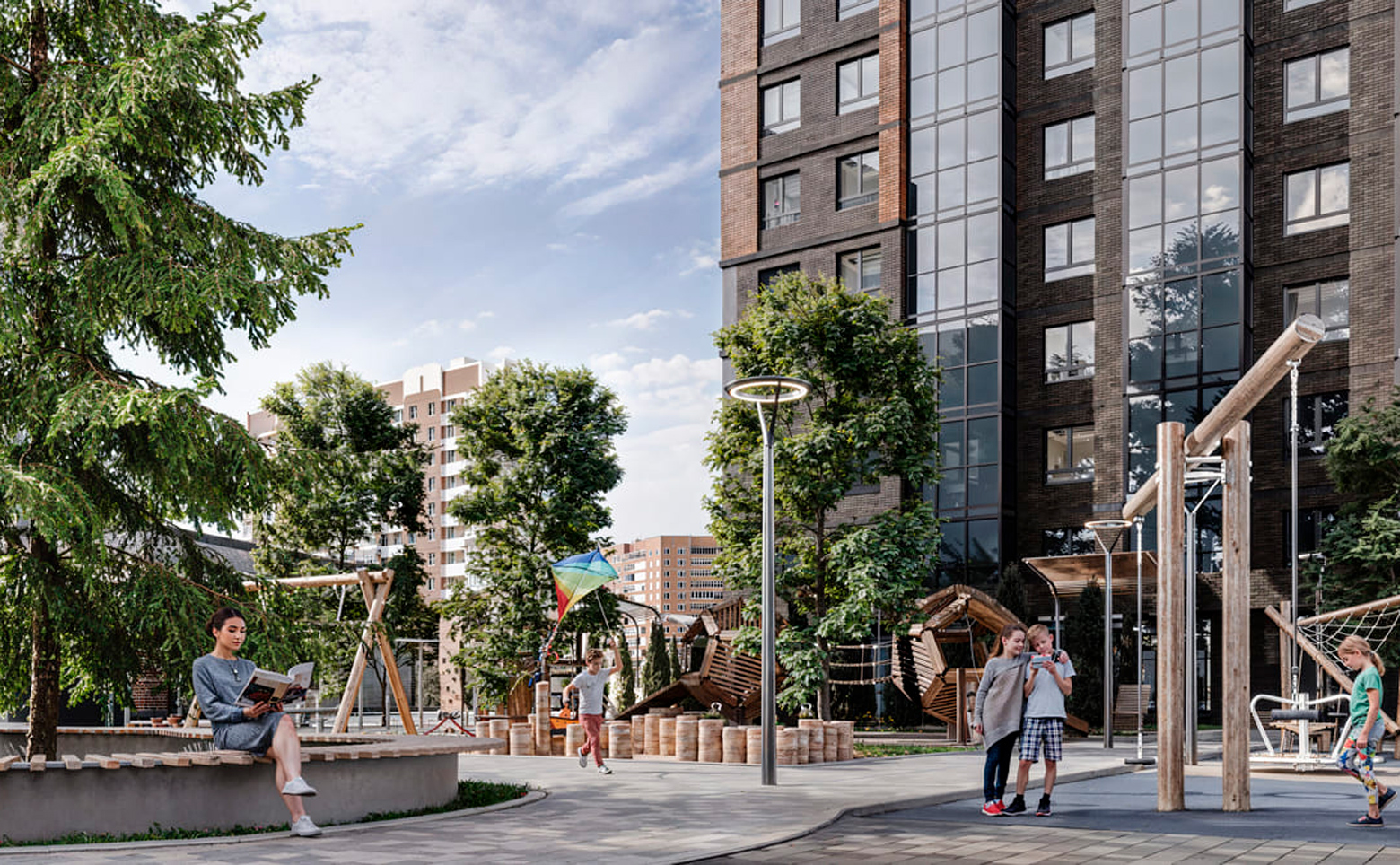 Во внутреннем дворе обустроены зоны для разных возрастов: игровые экоплощадки, лаунж-зона с беседками, воркаут-зона, спортивная площадка, мультифункциональное поле для игр. Для владельцев автомобилей предусмотрен подземный паркинг.