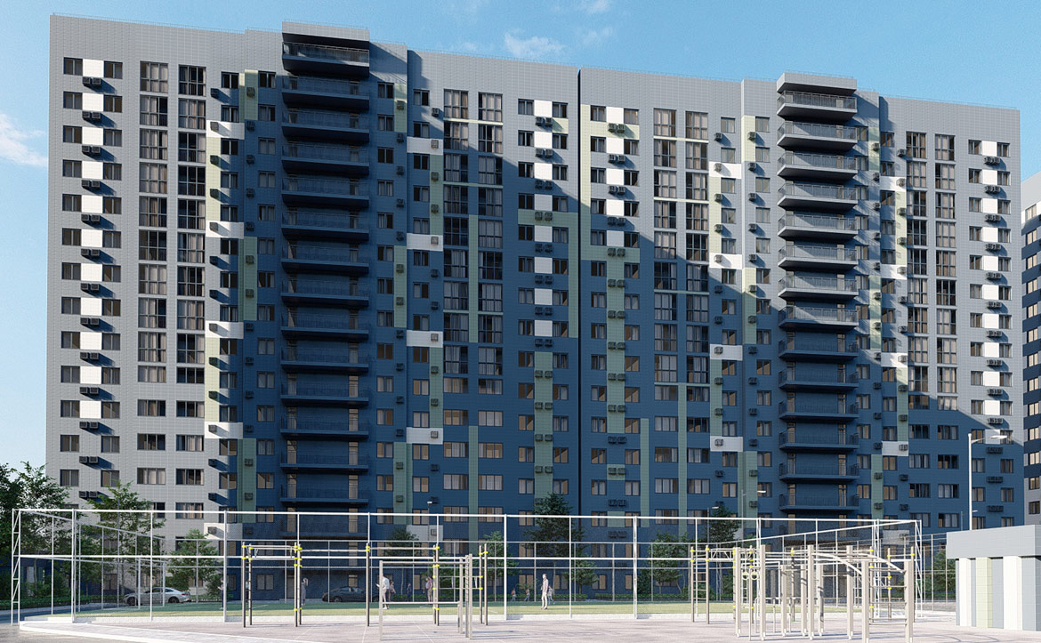 Жилой комплекс состоит из 11 монолитных корпусов высотой до 21 этажа. В оформлении стен зданий используется навесной вентилируемый фасад. Во всех домах выполнена дизайнерская отделка входных групп и установлены современные скоростные лифты.