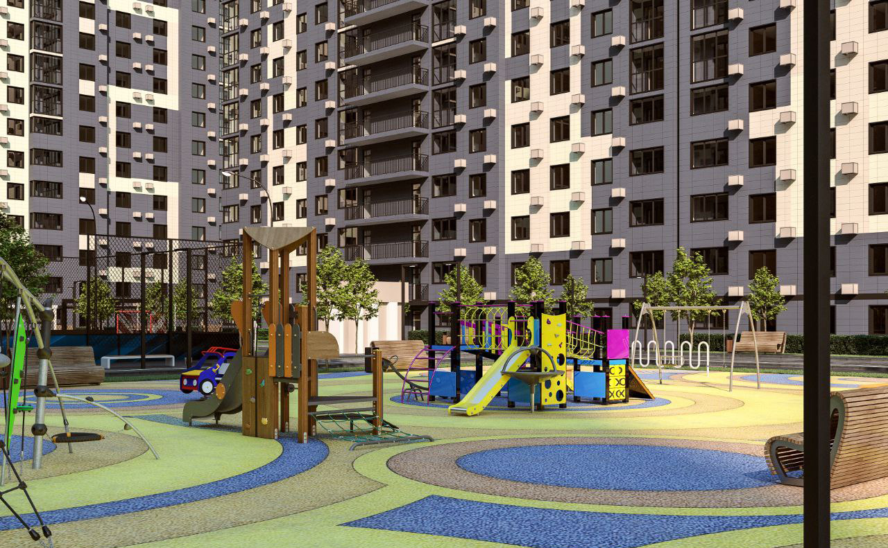 На придомовой территории комплекса, спроектированной по концепции «двор без машин», расположены детские и спортивные площадки, обустроены места для отдыха. Для владельцев автомобилей предусмотрены подземный паркинг и стоянка.