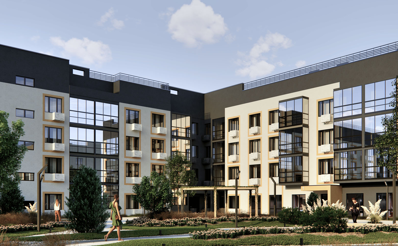 Жилой комплекс состоит из 4 корпусов высотой в 4 этажа. Дома возведены по долговечной монолитной технологии, фасады облицованы штукатуркой и выполнены в едином стиле. В проекте выполнена дизайнерская отделка входных групп. Установлены современные скоростные лифты.