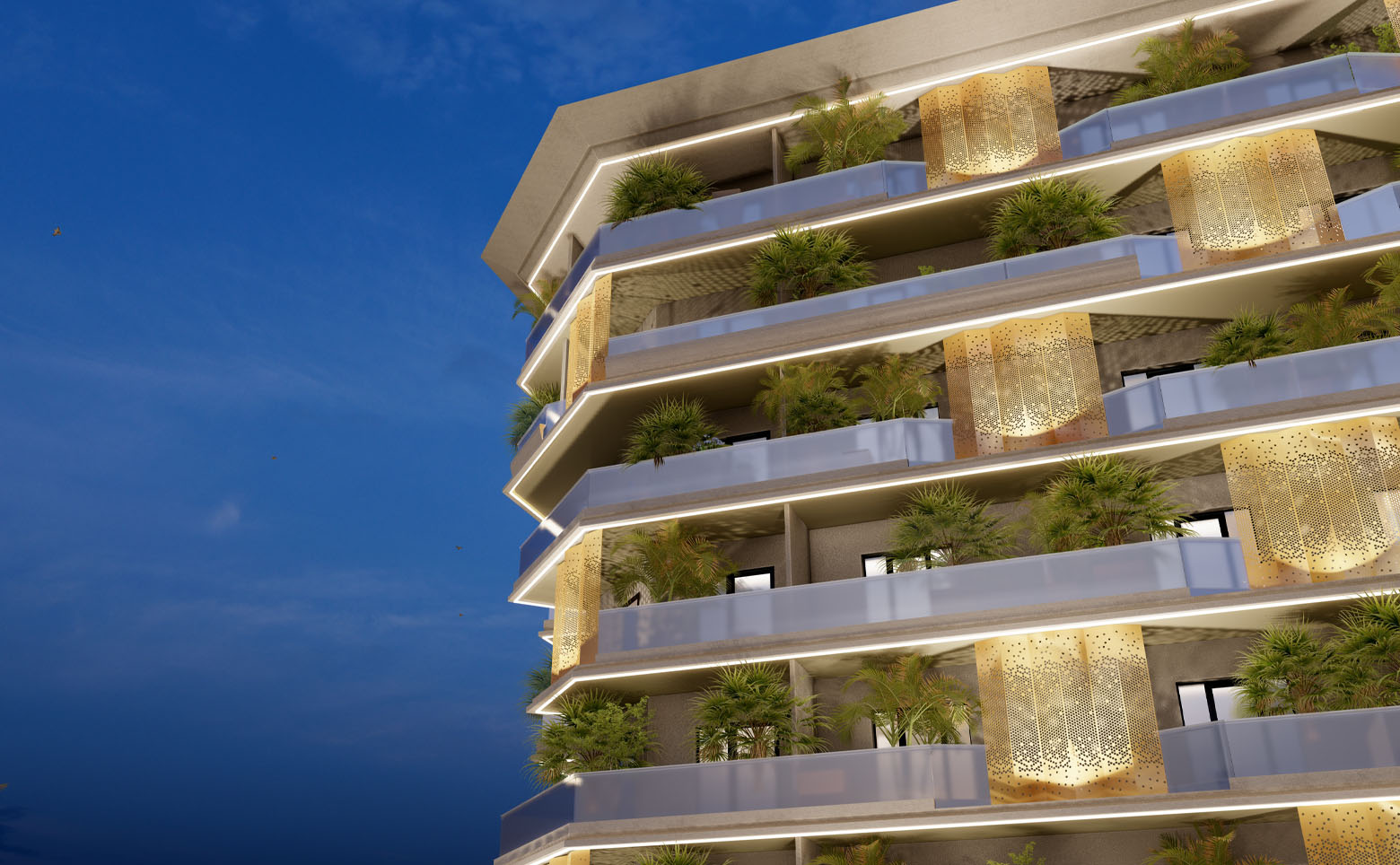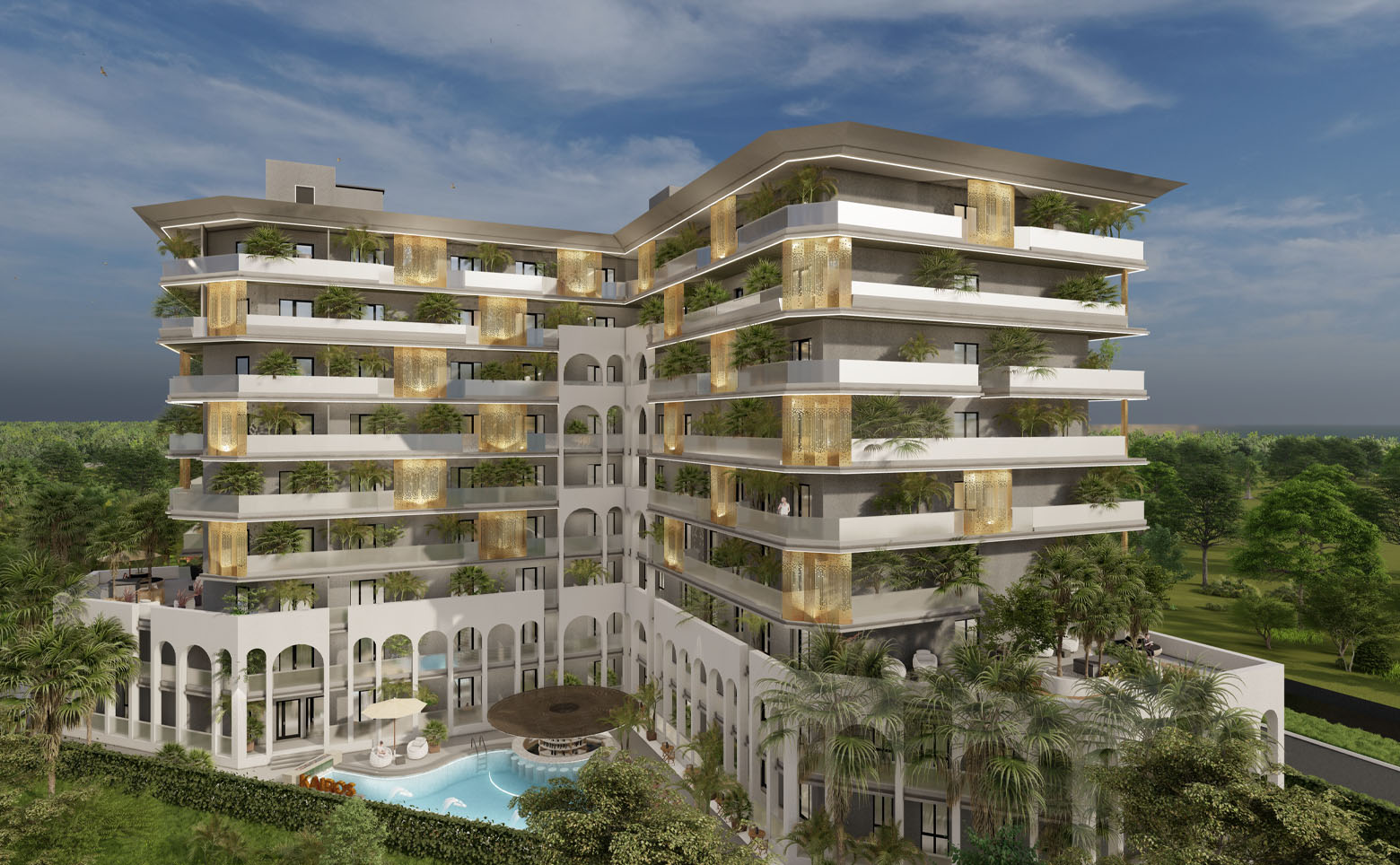 В проекте представлены студии и апартаменты с 1–3 комнатами, выполненные в формате европланировок с кухней-гостиной. Во всех квартирах — панорамное остекление с алюминиевым профилем и балконы с видами на море, бассейн или горы. Помещения идут с бытовой техникой, в базовую комплектацию входят: ламинат в жилых комнатах, керамогранит в санузлах и на балконах, стены оклеены обоями, потолки — натяжные. Установлены сплит-система, теплый пол и полный комплект сантехники в санузле, кухонный гарнитур со встроенной техникой.