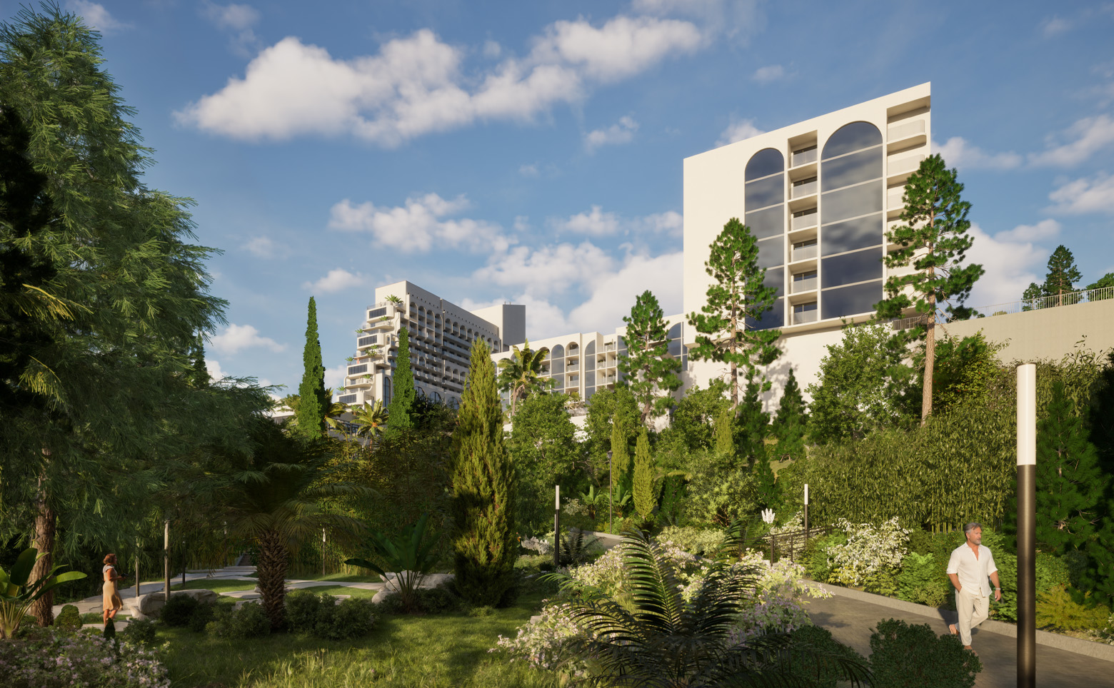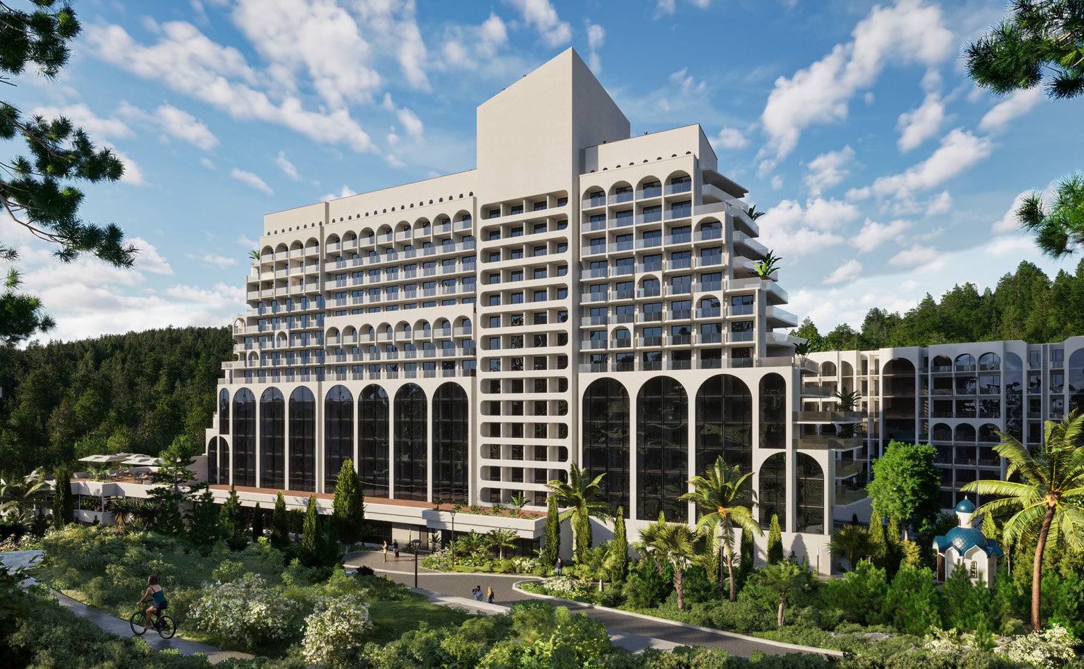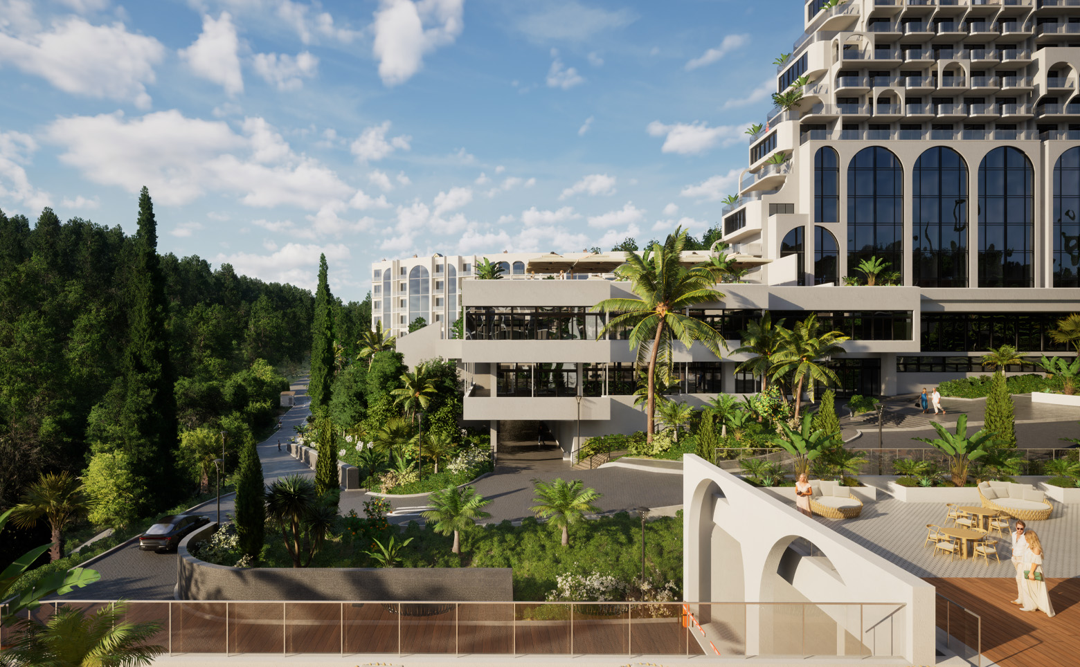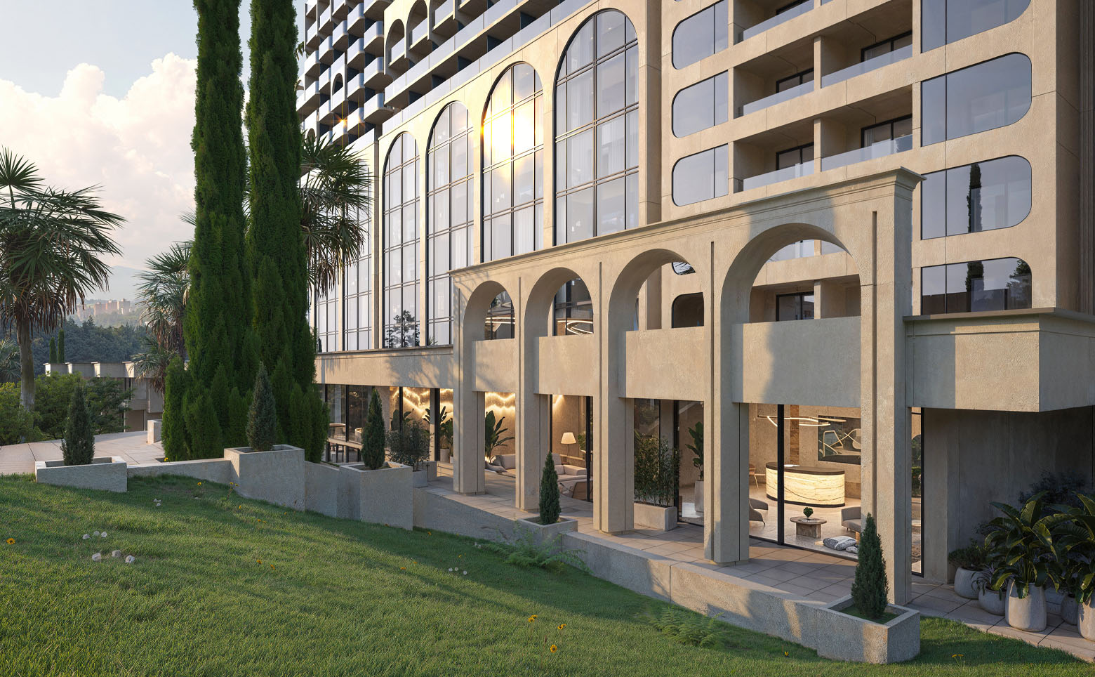 Застройка выполнена по кирпично-монолитной технологии с архитектурой, ориентированной на южный рельеф и густую растительность реликтового дендропарка. Всего 5 корпусов образуют курортное пространство со спокойной пластикой фасадов и увеличенными оконными проемами, раскрывающими виды на море и зеленые склоны. Лобби оформлены в эстетике модерна с мягкими природными оттенками, спокойным светом и камерными лаунж-зонами. На территории оборудована охраняемая стоянка.