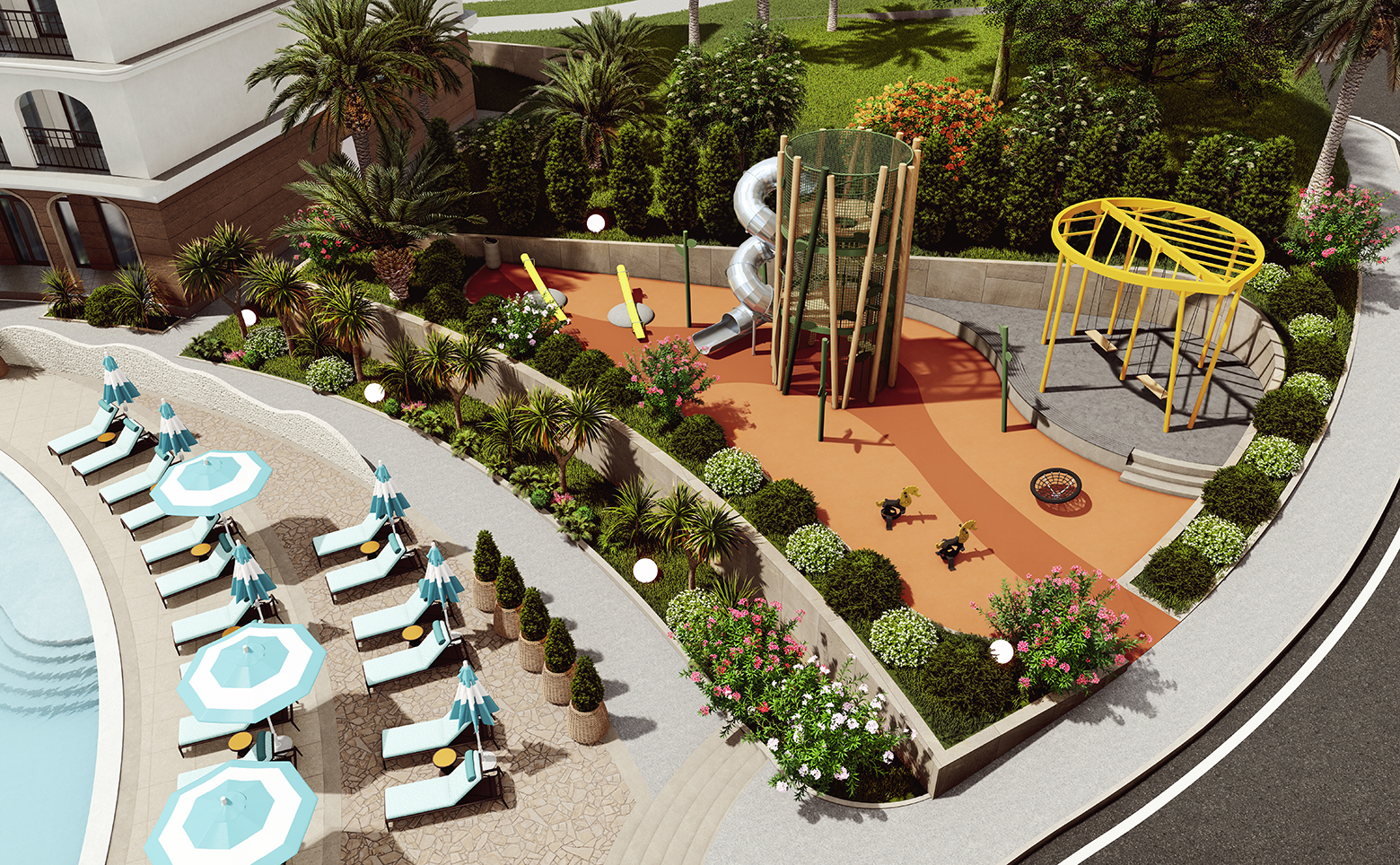 Комплекс расположен на первой береговой линии. В инфраструктуру гостиничного комплекса входят: бассейны, спа-комплекс, детские и спортивные площадки, собственный пляж, мини-гольф, боулинг, бильярд, конгресс центр для проведения выставок и конференц-зал. Для владельцев автомобилей предусмотрен отдельный многоуровневый и подземный паркинг.