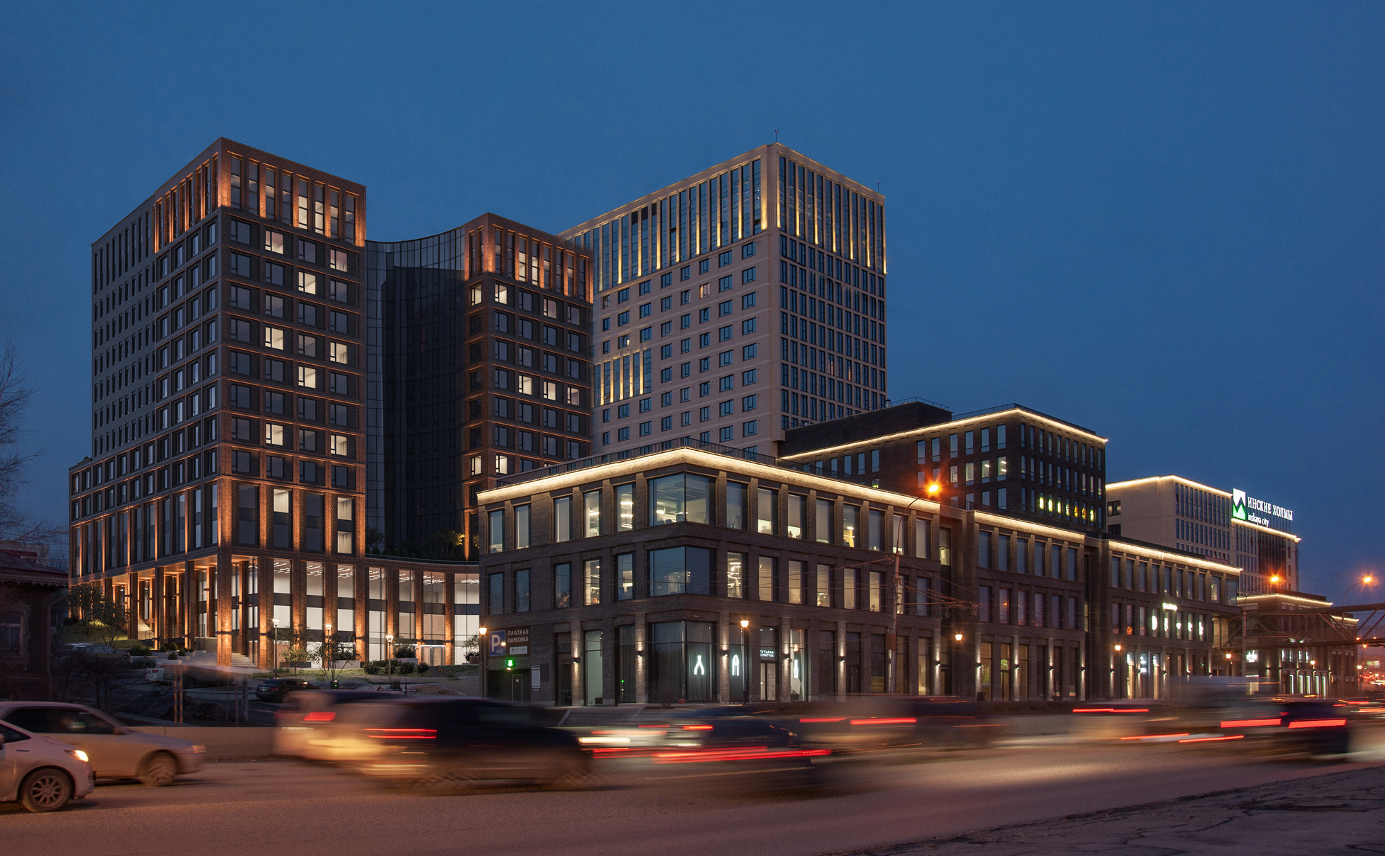 Квартал имеет развитую инфрастуктуру: фитнес-центр с бассейном, гостиница, ИТ-парк, кафе. Для владельцев автомобилей предусмотрен подземный паркинг.