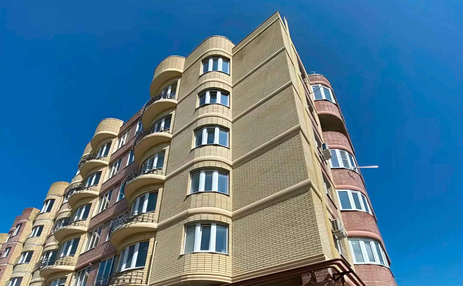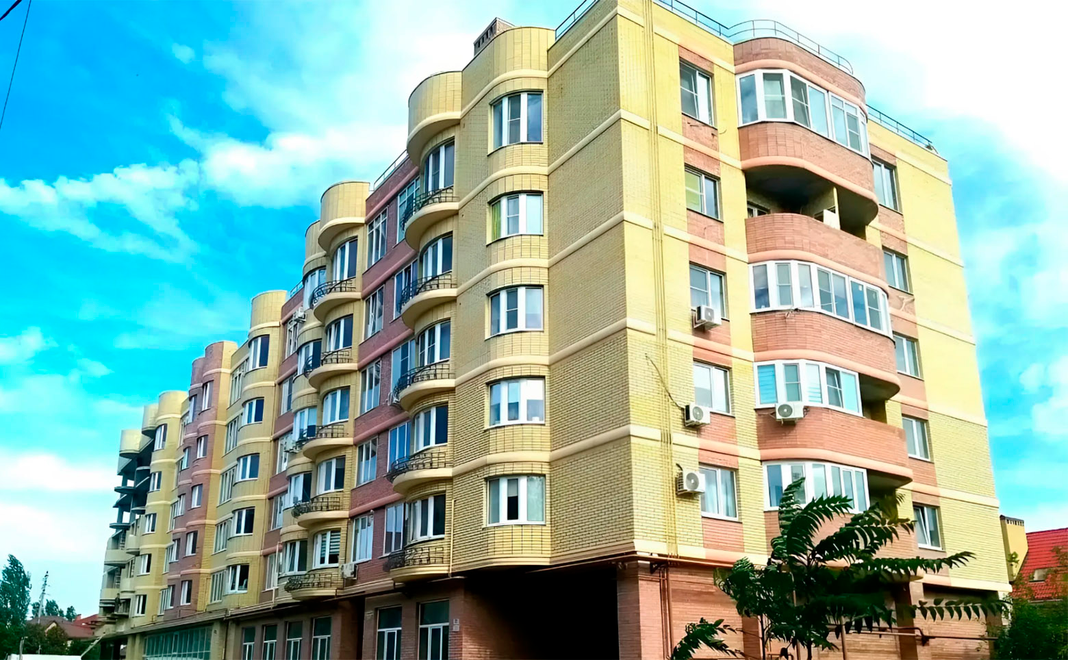 Жилой комплекс представляет собой современную малоэтажную застройку, возведенную по технологии кирпично-монолитного строительства с фасадами, облицованными кирпичом.