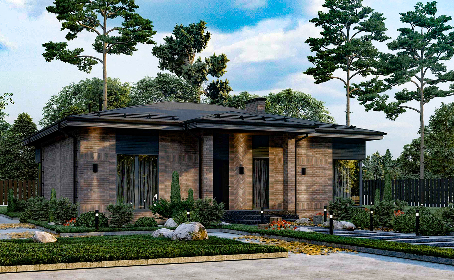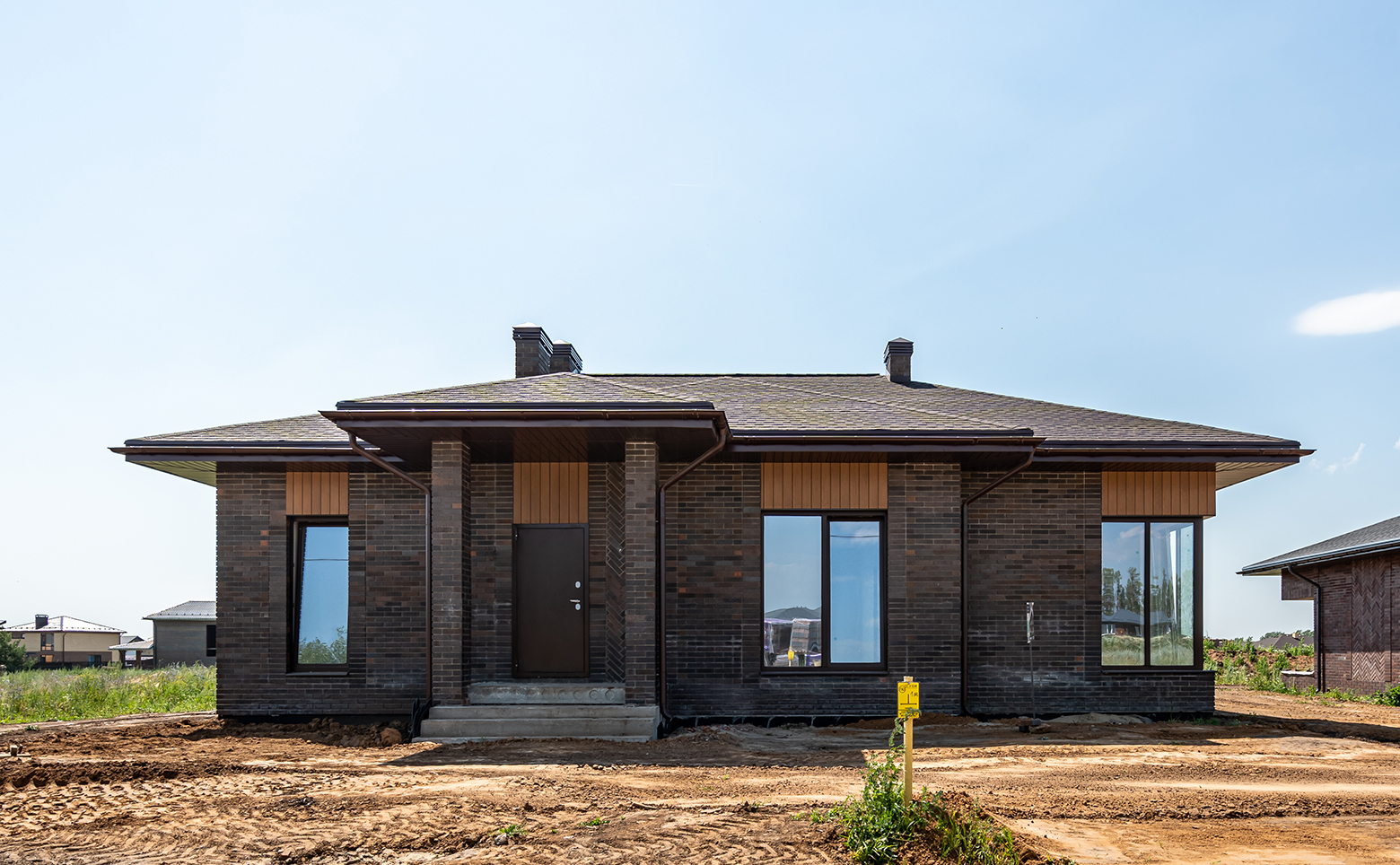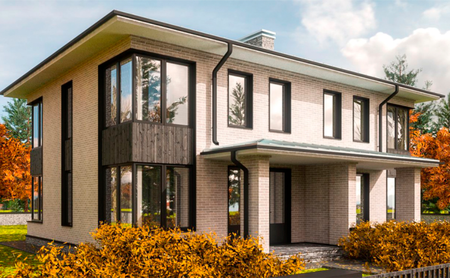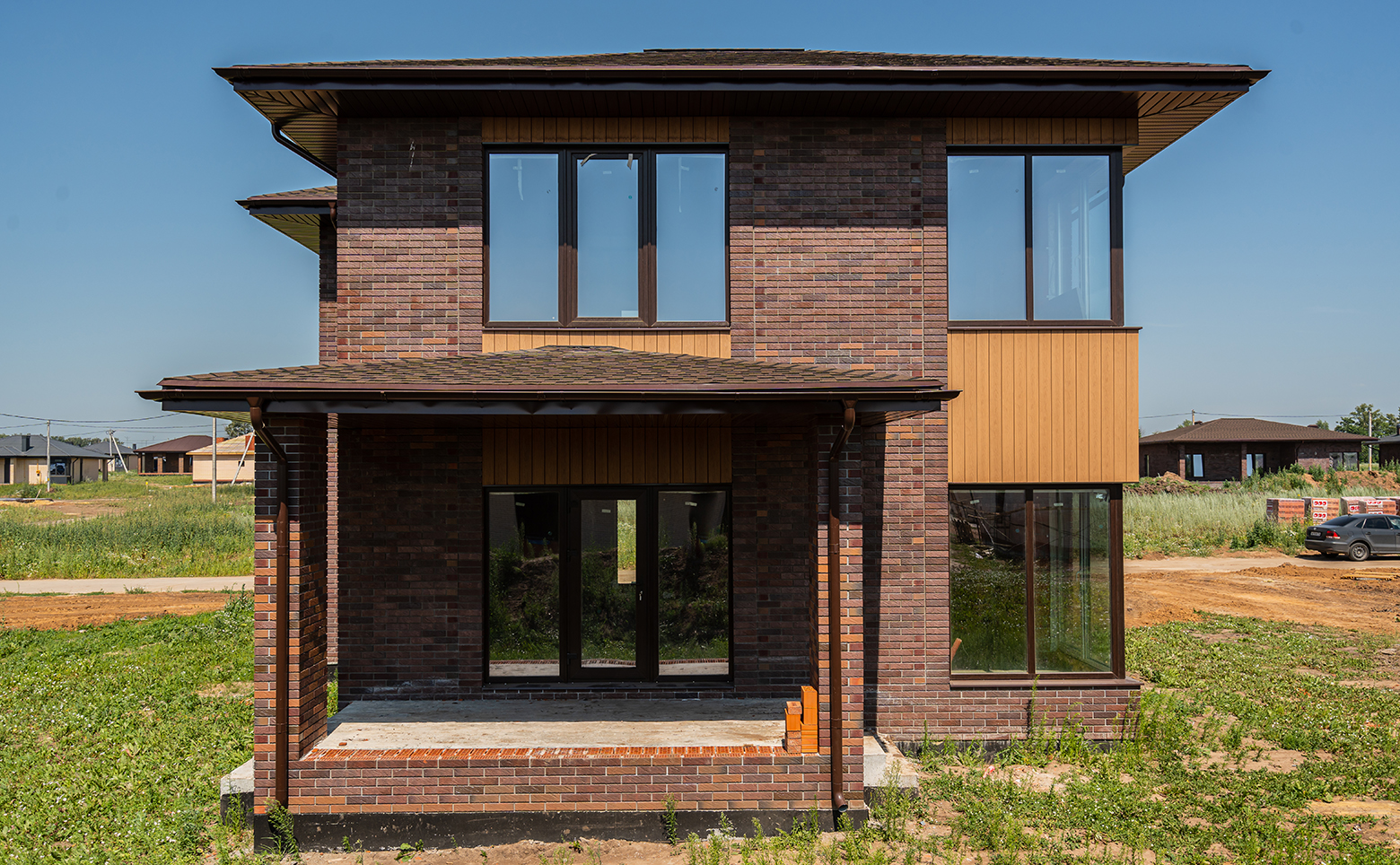 Коттеджный поселок включает в себя множество домов, объединенных общей территорией и инфраструктурой. Коттеджи возведены по долговечной кирпичной технологии строительства. Фасады домов облицованы кирпичом и выполнены в едином стиле.