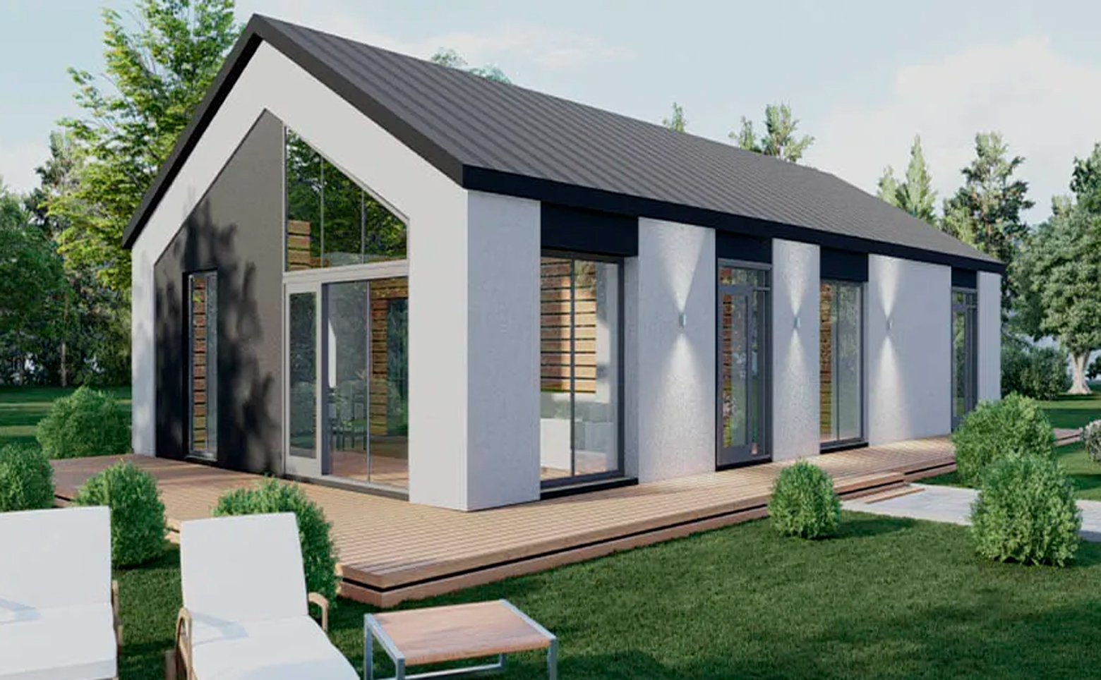 Коттеджи имеют разнообразные планировки и просторные площади. Высота потолков от 2,8 метра. У каждого дома есть собственная электрическая котельная, водонагреватель и другие коммуникации. Коттеджи сдаются с подчистовой отделкой. Из окон открываются виды на сосновый лес.