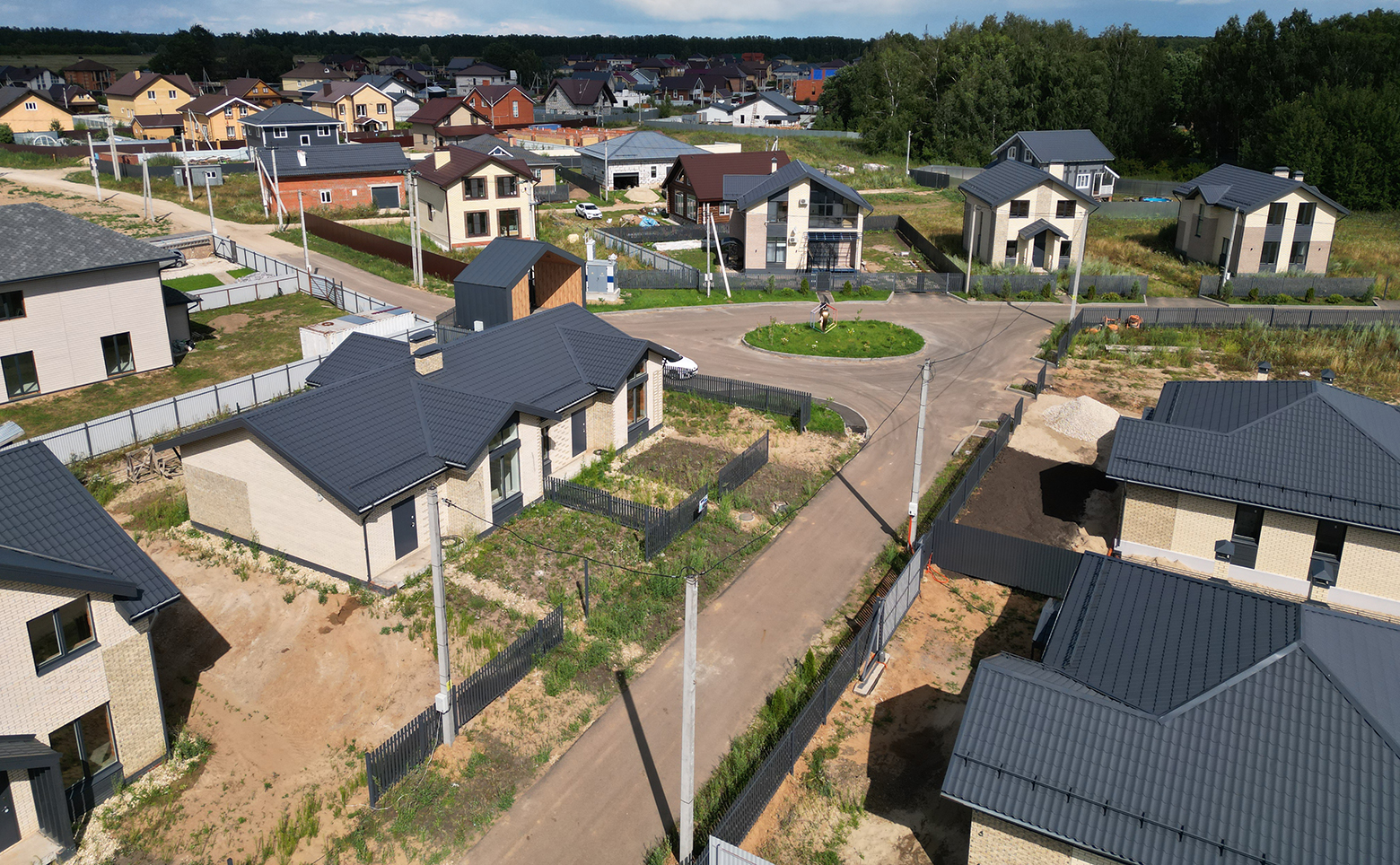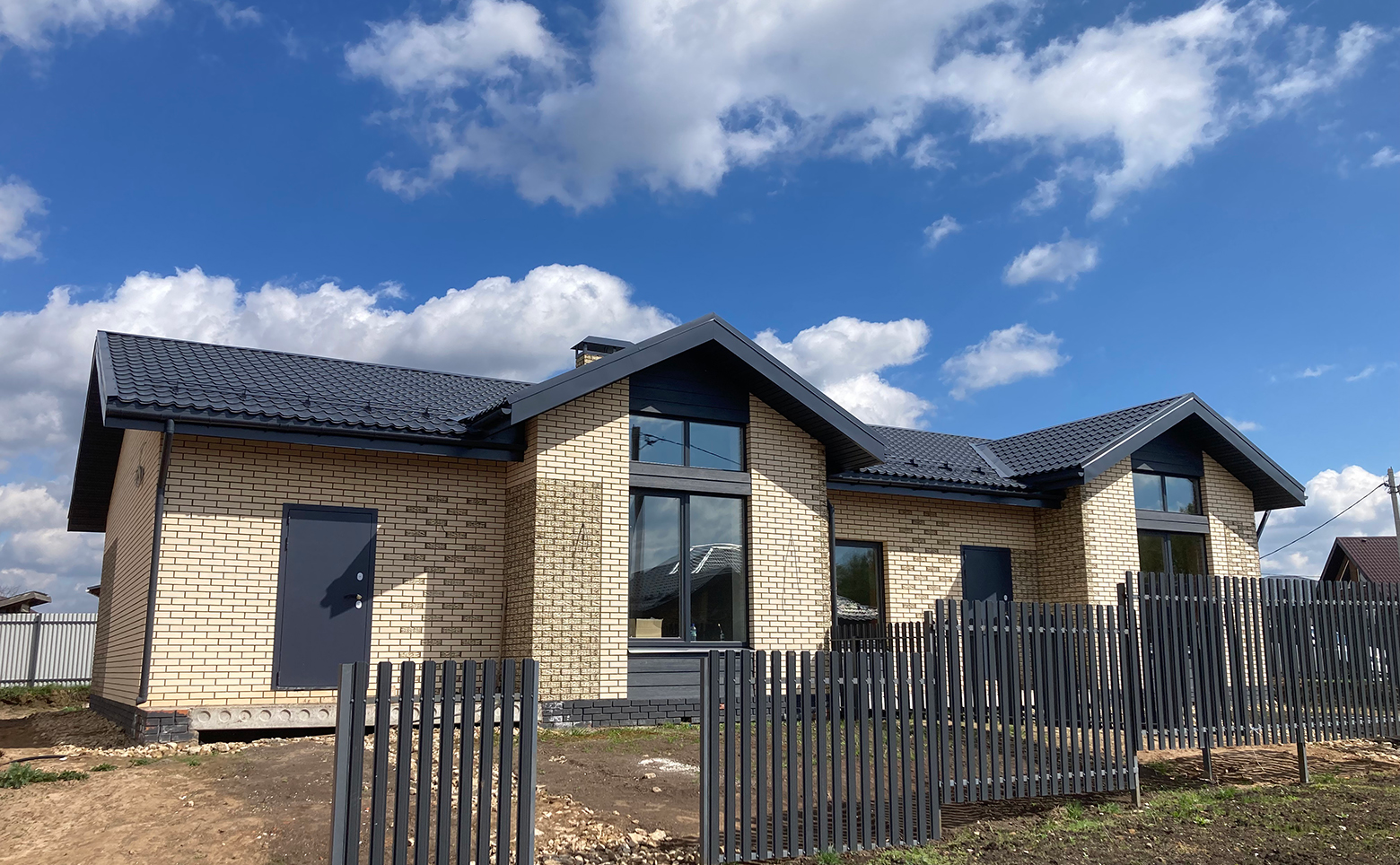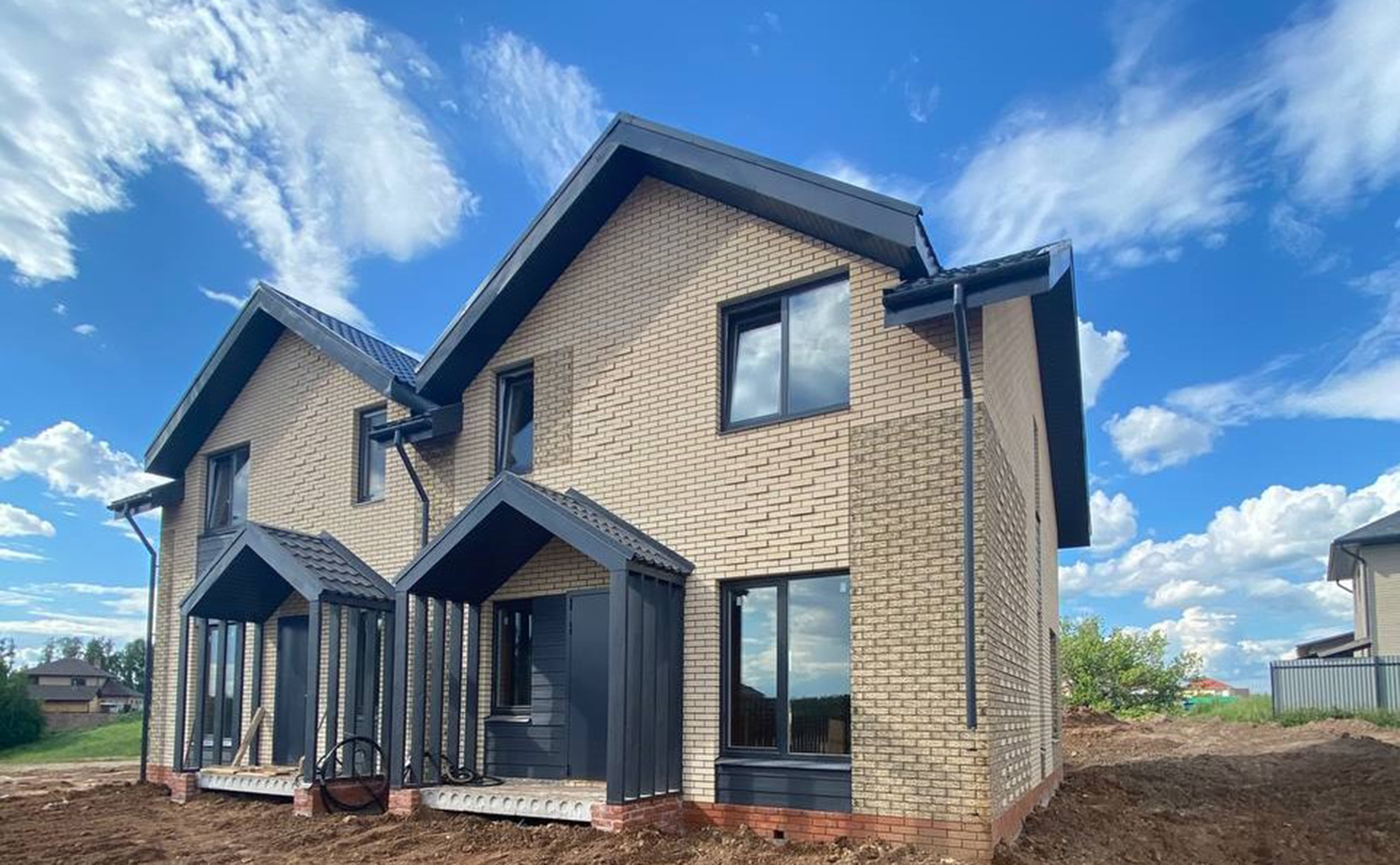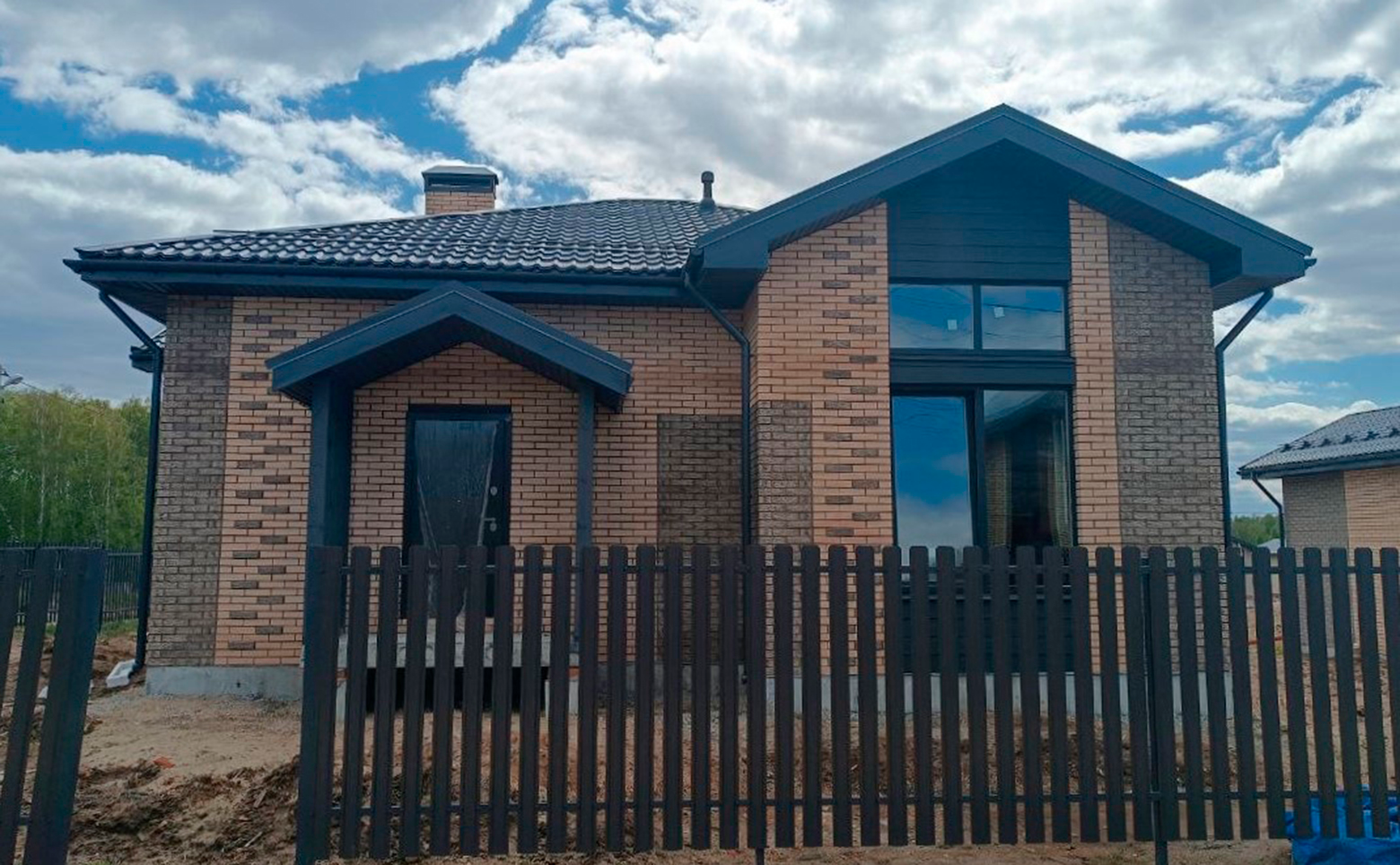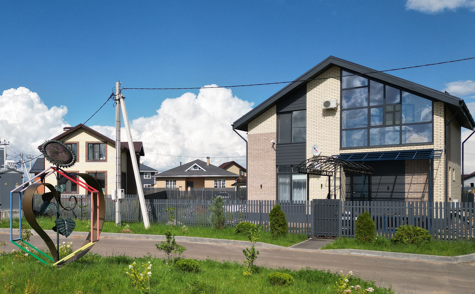 Коттеджный поселок включает в себя множество домов, объединенных общей территорией и инфраструктурой. Здания возведены по долговечной кирпичной технологии строительства. Фасады домов облицованы кирпичом и выполнены в едином стиле.