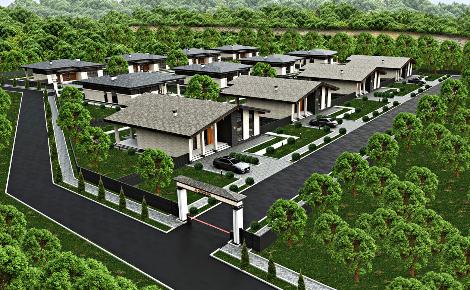 На территории поселка проложена асфальтированная дорога, установлено освещение. Организованы зоны для детей и взрослых. На закрытой территории поселка ведется круглосуточное видеонаблюдение. Для владельцев автомобилей предусмотрена стоянка.