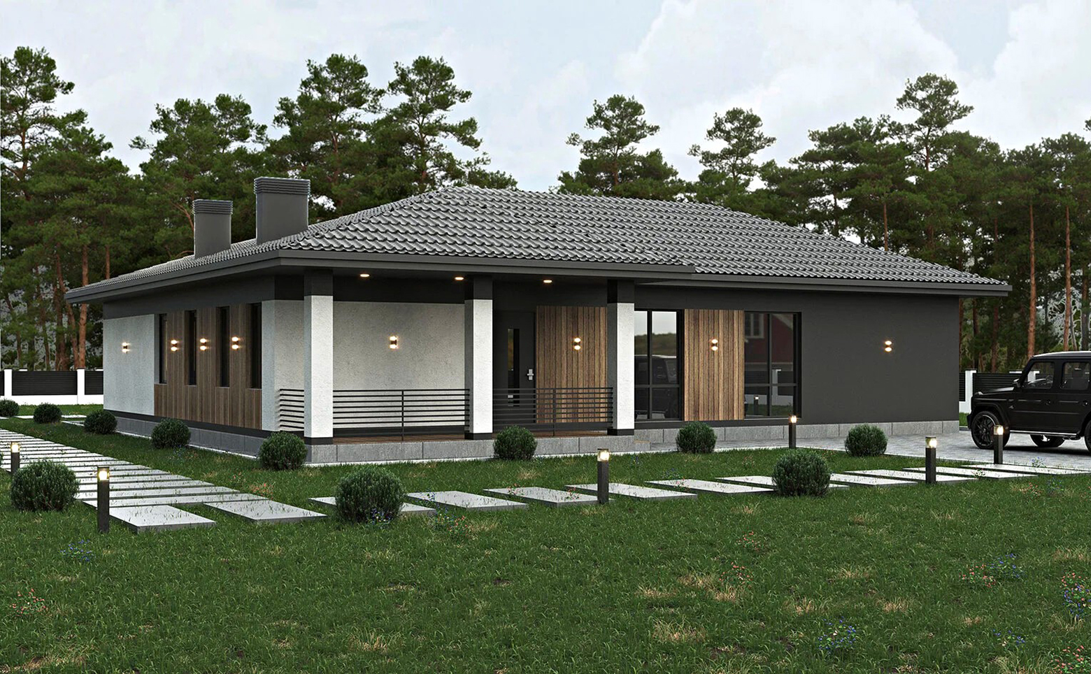 В проекте предложены типовые планировки площадью от 138 до 278 кв.м. Сдаются дома без отделки, с террасой, увеличенными окнами с видом на лес и с высотой потолков 3,5 метра.