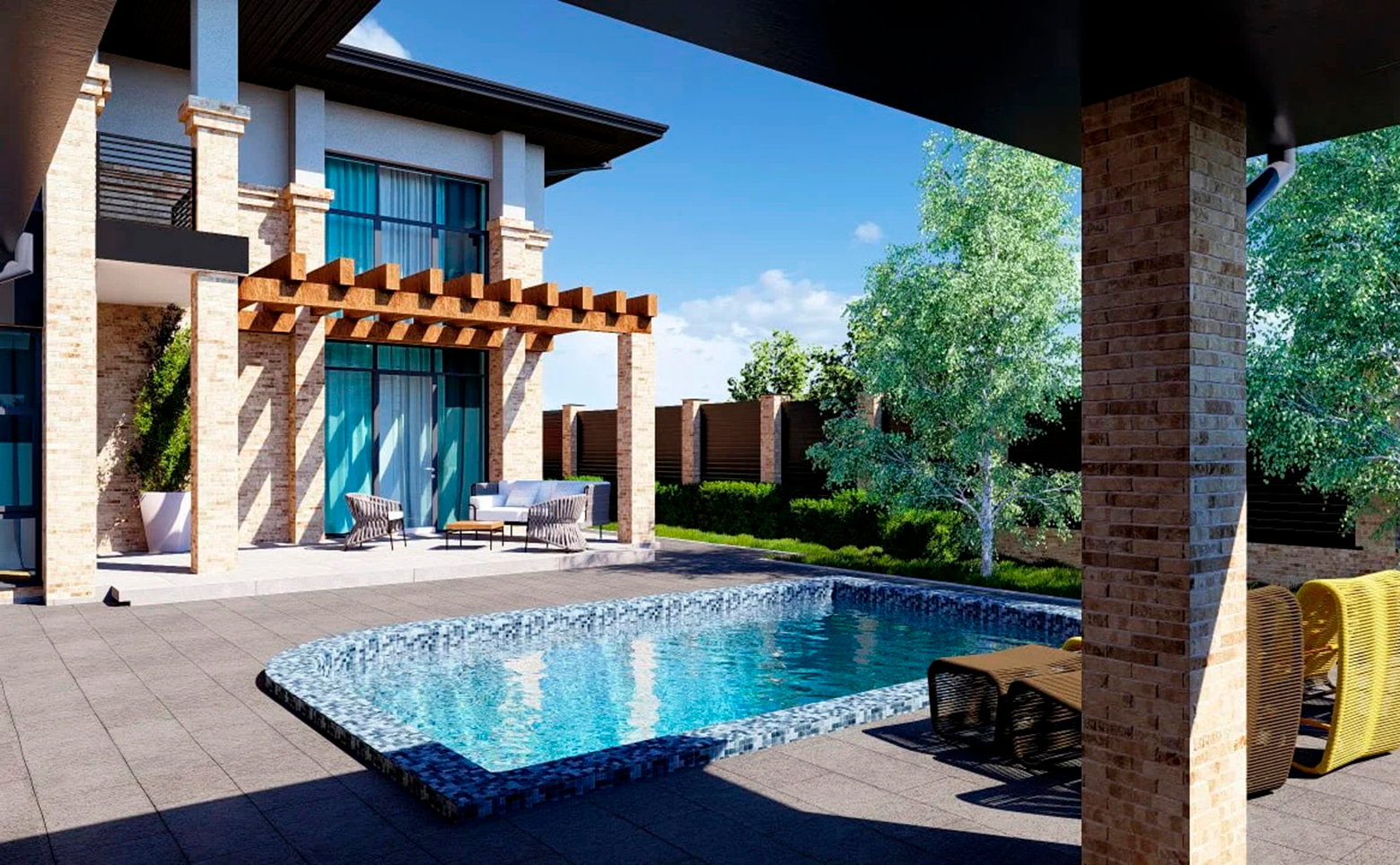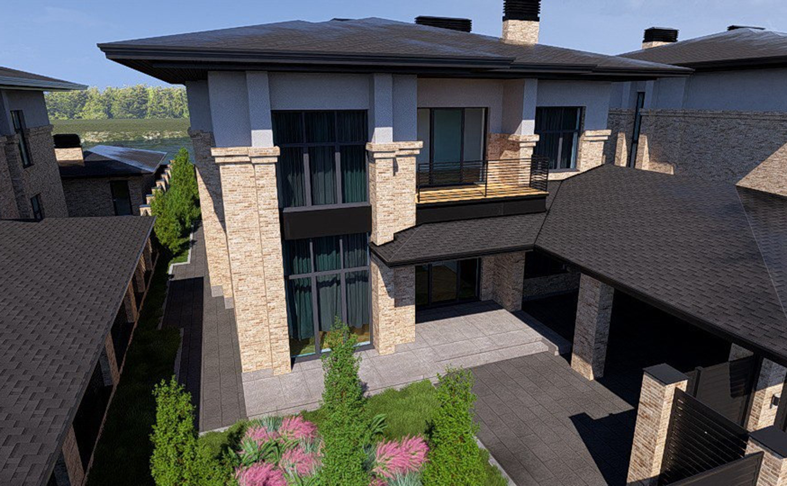 В проекте предлагаются 2-этажные коттеджи в подчистовой отделке: стены оштукатурены, уложена стяжка на обоих этажах. Установлены металлопластиковые панорамные окна с видом на ручей Камышеваха. Высота потолков составляет 3,3 м. В домах предусмотрено автономное отопление: газовый котел мощностью 24 кВт, теплые полы и радиаторы в жилых помещениях на 2 уровне.