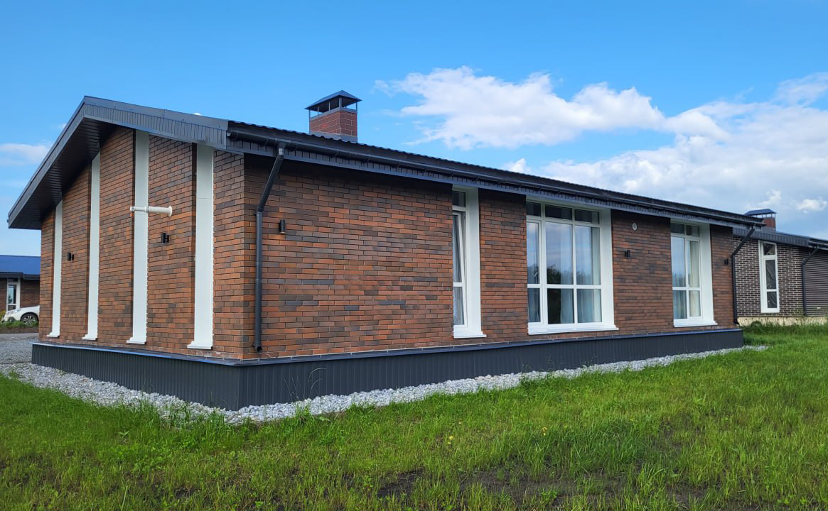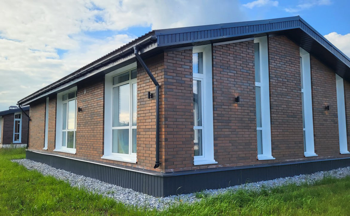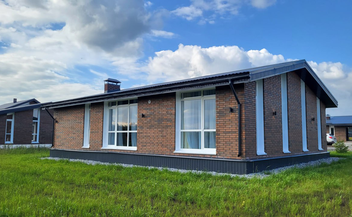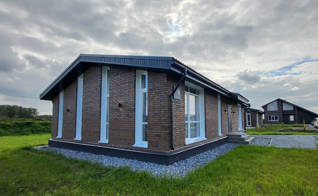 Проект представляет собой коттеджный поселок в едином архитектурном стиле. Фундамент домов выполнен из железобетонных плит, стены возведены из газобетона, а фасады облицованы кирпичом. Площадь земельных участков составляет от 10 соток.