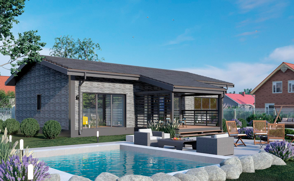 Все дома возводятся в едином архитектурном стиле. В проекте есть возможность приобрести участок с домом. Все дома сдаются без отделки. Высота потолков составляет 3 метра.