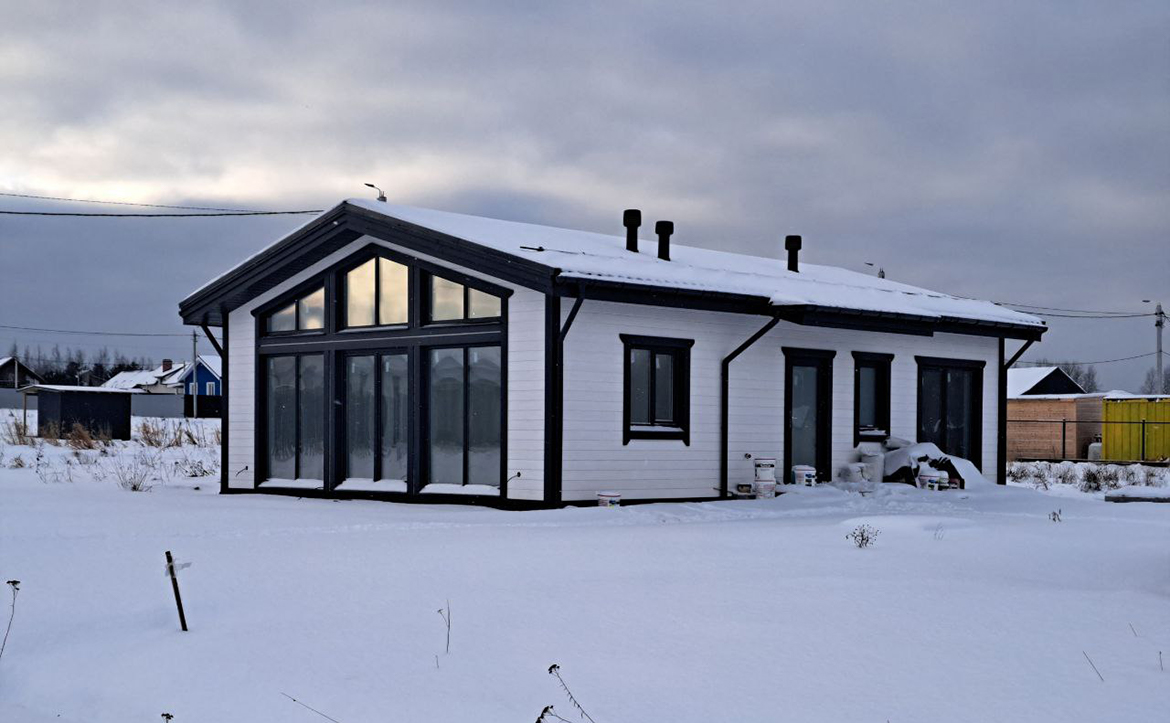 В проекте представлены коттеджи площадью 71 кв. м. Планировочные решения включают кухню-гостиную, 3 комнаты и 2 санузла. В домах установлены увеличенные и стандартные окна, а также окно в ванной комнате. Высота потолков — 2,7 м. Один дом предлагается без отделки, другой — с подчистовой отделкой. В подчистовом формате выполнены разводка электрики и водоснабжения, монтаж водяных теплых полов, устройство полусухой стяжки пола, установка котла и водонагревателя, отделка технического помещения имитацией бруса, подготовка внутренних стен гипроком со шпатлевкой, монтаж натяжных потолков и установка чердачной лестницы.