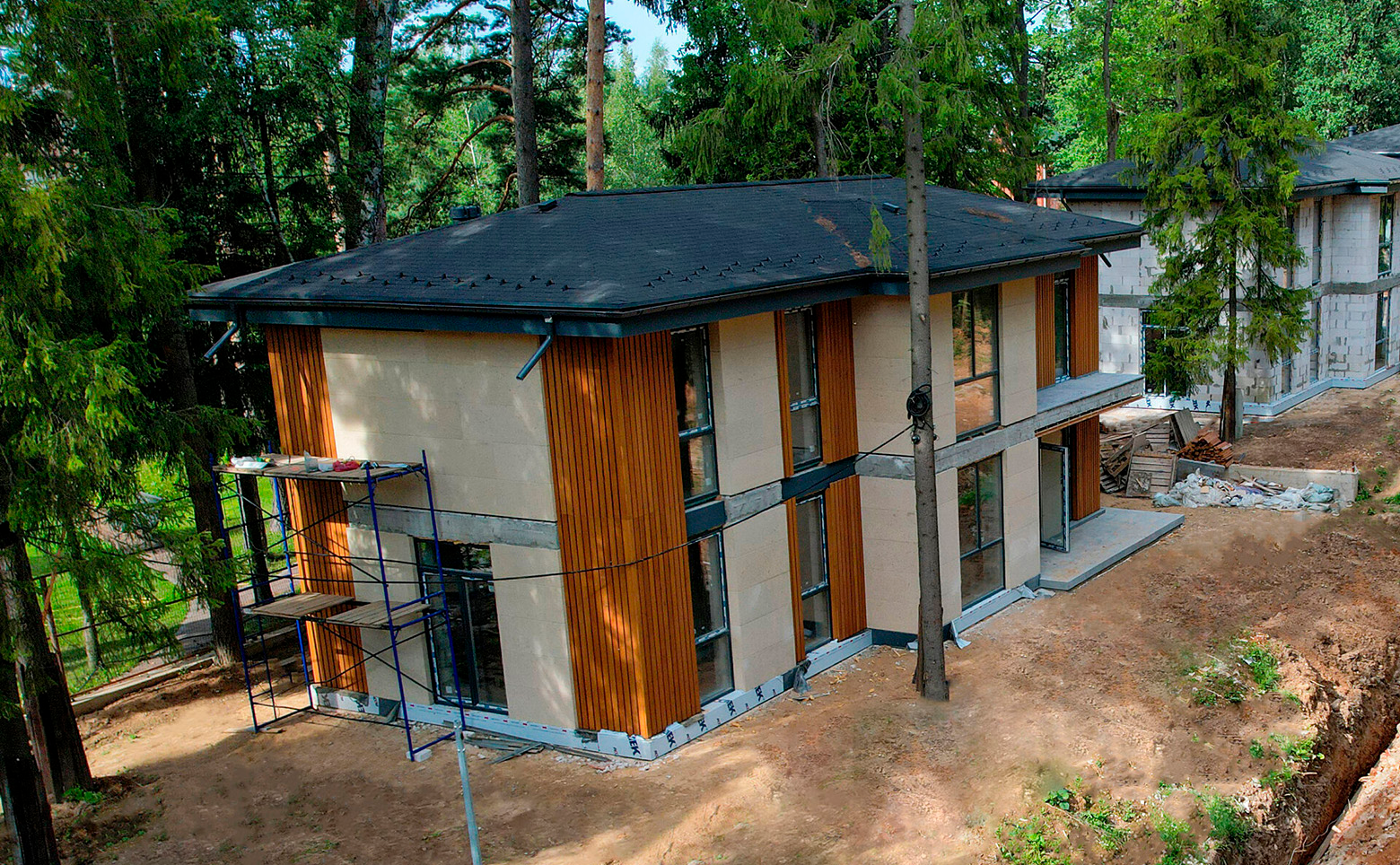 Коттеджный поселок представлен коллекцией участков под ДНП с готовыми домами от застройщика. Здания построены по надежной технологии из газобетона с отделкой фасадов комбинированными материалами. Дома спроектированы в едином архитектурном стиле и гармонично вписаны в окружающий ландшафт.