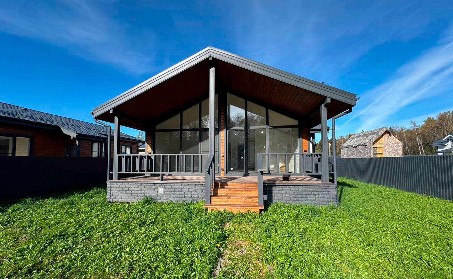 В проекте предложено несколько видов планировок одноэтажных коттеджей. В каждом доме предусмотрены терраса, просторная кухня-гостиная. Сдаются лоты с чистовой отделкой, стандартными и панорамными окнами и высотой потолков от 2,5 до 4,5 метра.