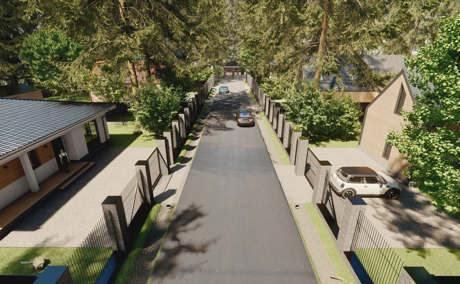 Коттеджный поселок представляет собой загородную застройку в окружении вековых елей. Дома возведены по современной технологии из газобетона, что обеспечивает прочность и теплоизоляцию, а фасады отделаны штукатуркой. Срок строительства — 3–4 месяца. Владельцы участка могут выбрать индивидуальный проект и адаптировать планировку, фасад и другие элементы под свои предпочтения.