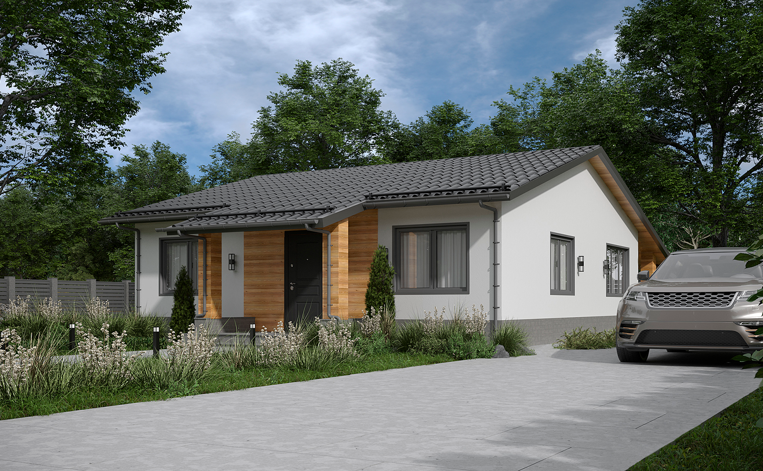 В поселке представлены 1-этажные и 2-этажные коттеджи с просторными планировками. В них предусмотрены потолки высотой 3 метра, стандартные окна, терраса и большая кухня-гостиная. Дома идут без отделки, но можно заказать подчистовую отделку. В базовую комплектацию входит полный цикл строительных работ, включая заливку фундамента, возведение стен и кровли, установку окон и дверей.