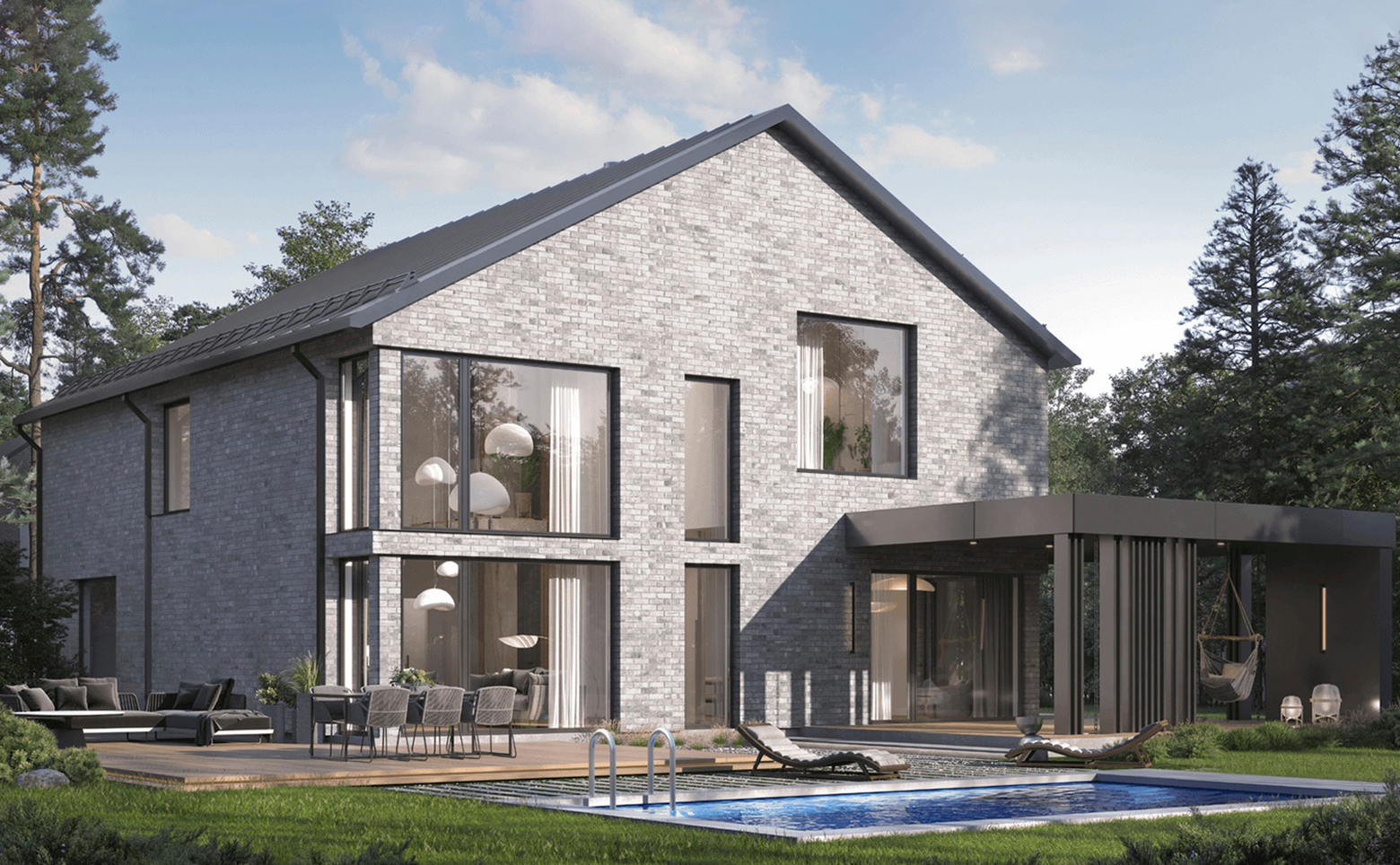 В поселке представлено множество планировочных решений — линейка домов включает в себя 5 различных по площади коттеджей, спроектированных в едином стиле лаконичного минимализма. Во всех домах запроектированы мастер-спальни, ванные с окнами, предусмотрены места для хранения, а на первом этаже расположено большое пространство кухни-гостиной. Все лоты сдаются с увеличенными оконными проемами и без отделки.
