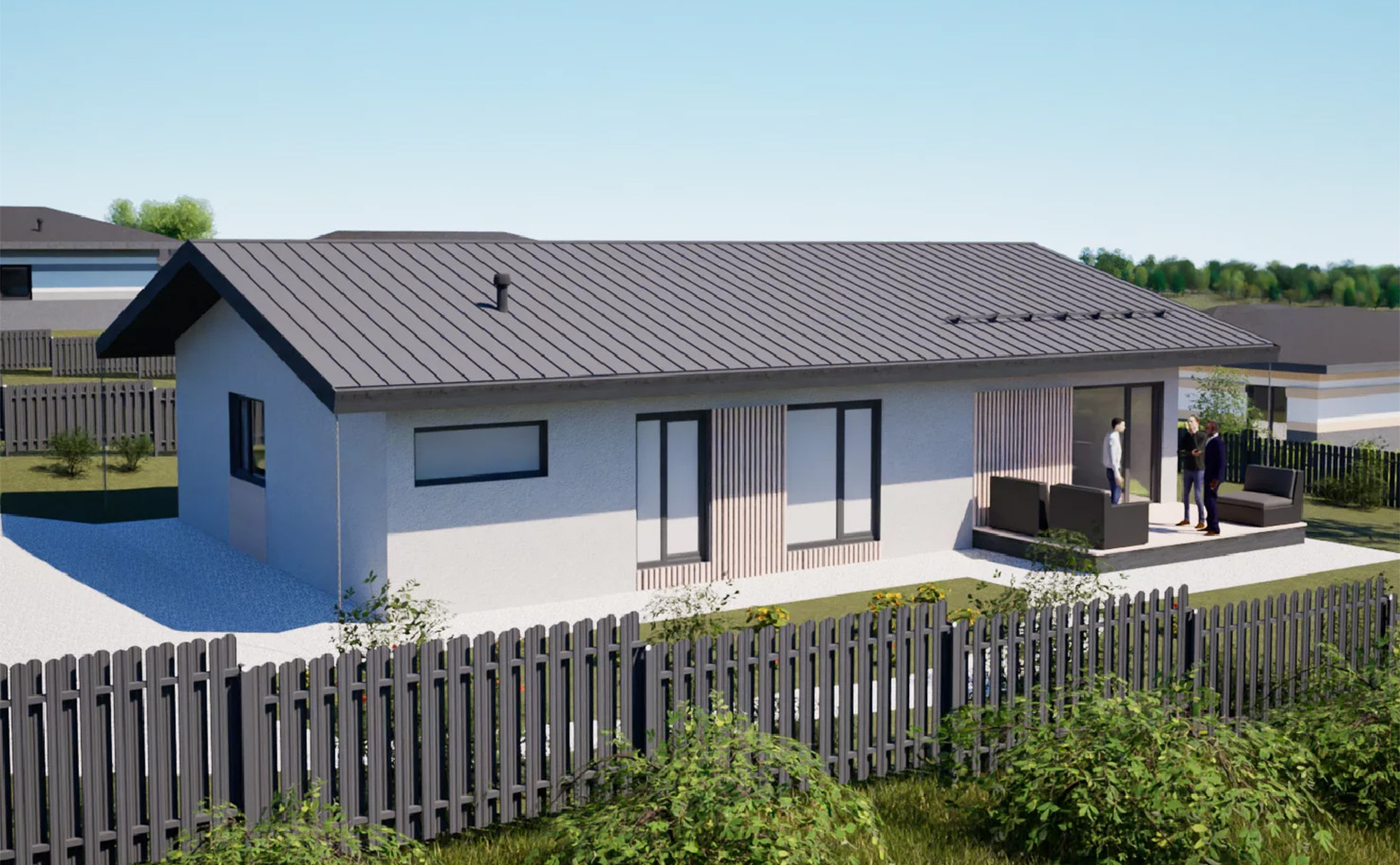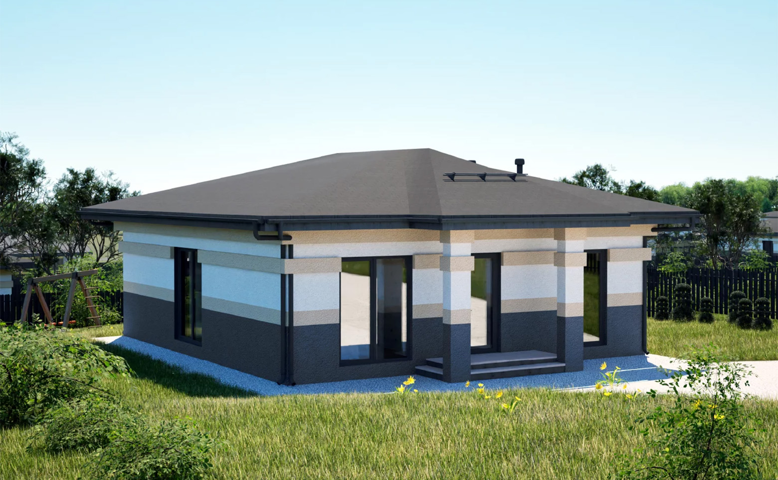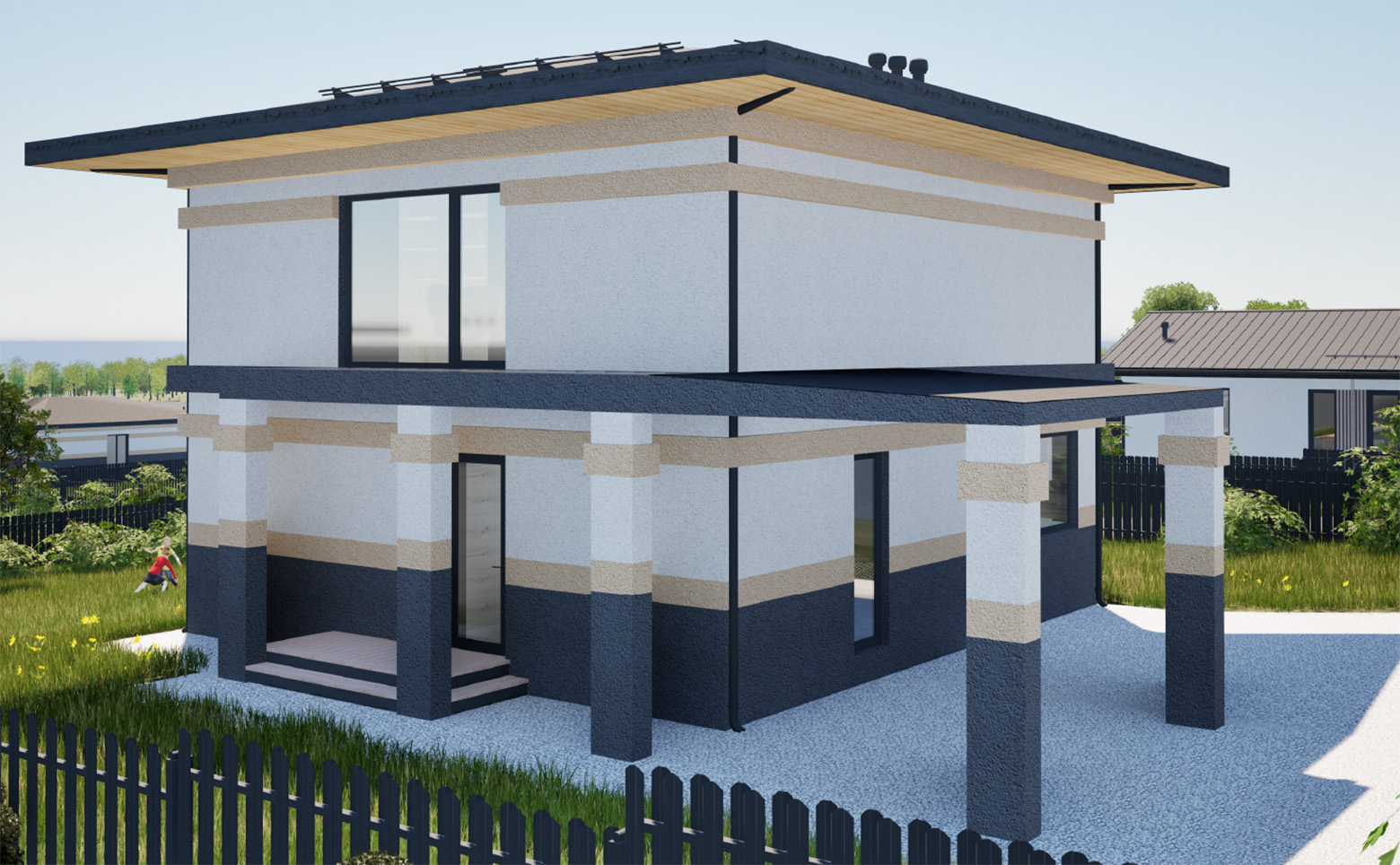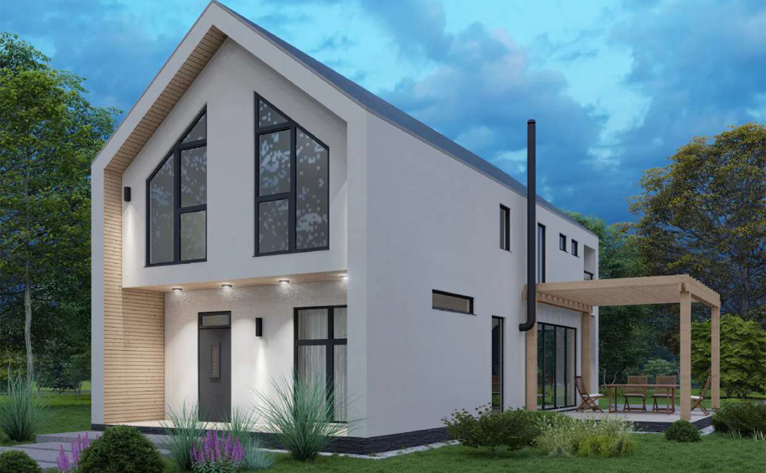 На выбор предложены дома, возведенные по технологии газобетон-монолит с фасадами, облицованными штукатуркой.