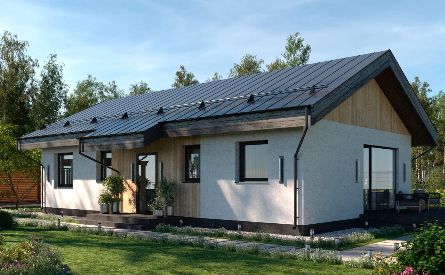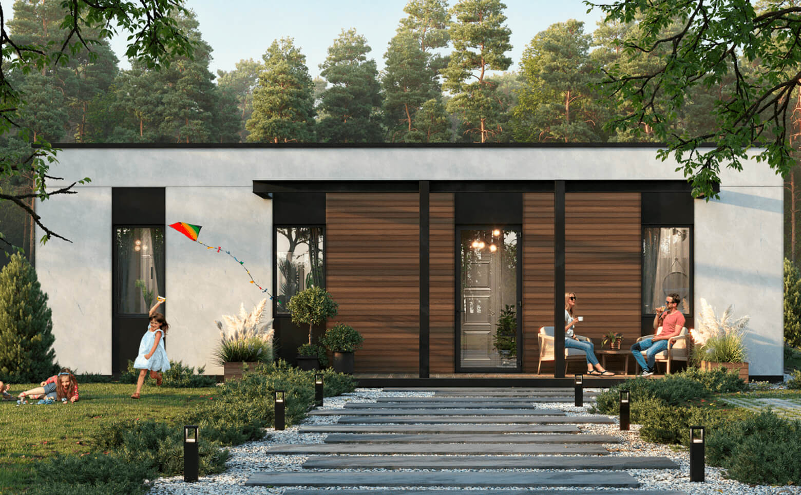 В проекте представлено множество планировочных решений — дома с кухнями-гостинными, террасами или гаражами. Сдаются лоты с подчистовой отделкой, панорамными и стандартными окнами, высотой потолков от 2,85 метров.