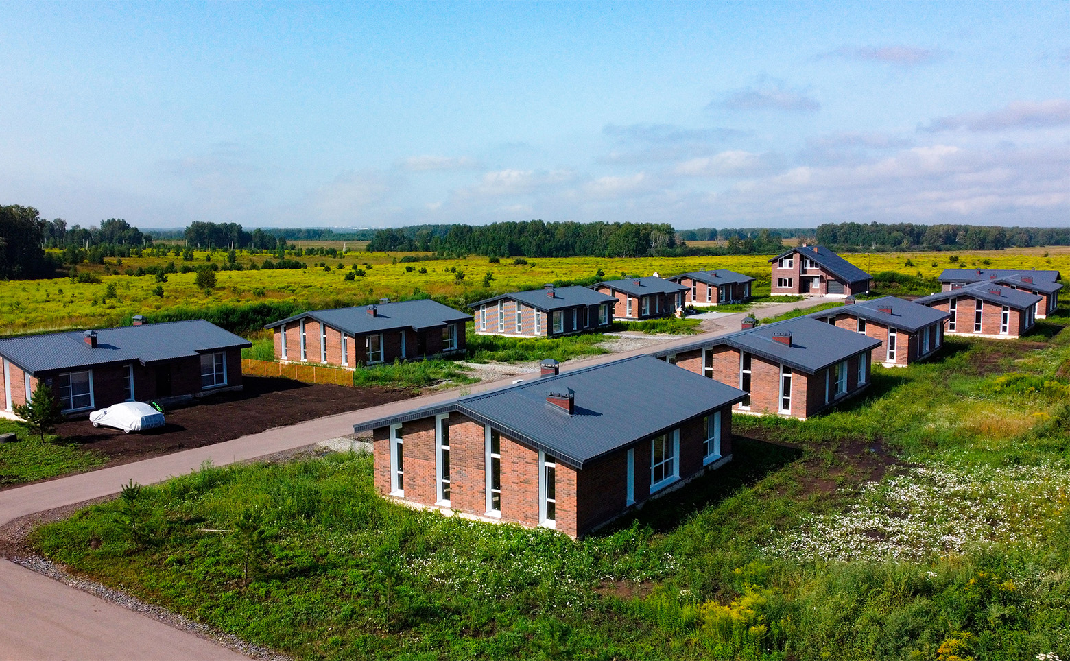 Проект расположен в окружении природы. Предусмотрено все для комфортного проживания — асфальтированные дороги, электричество, водопровод и газ.