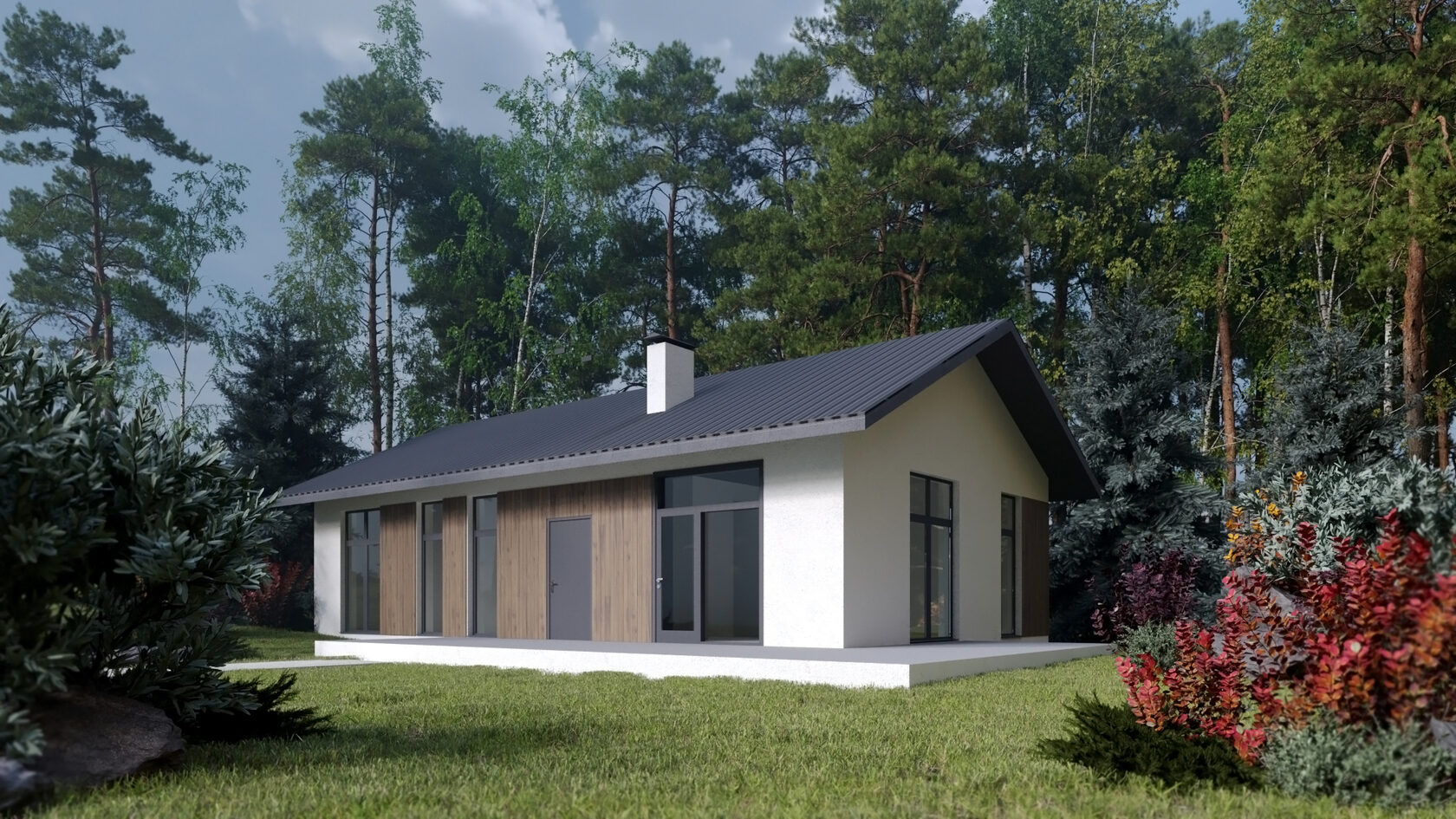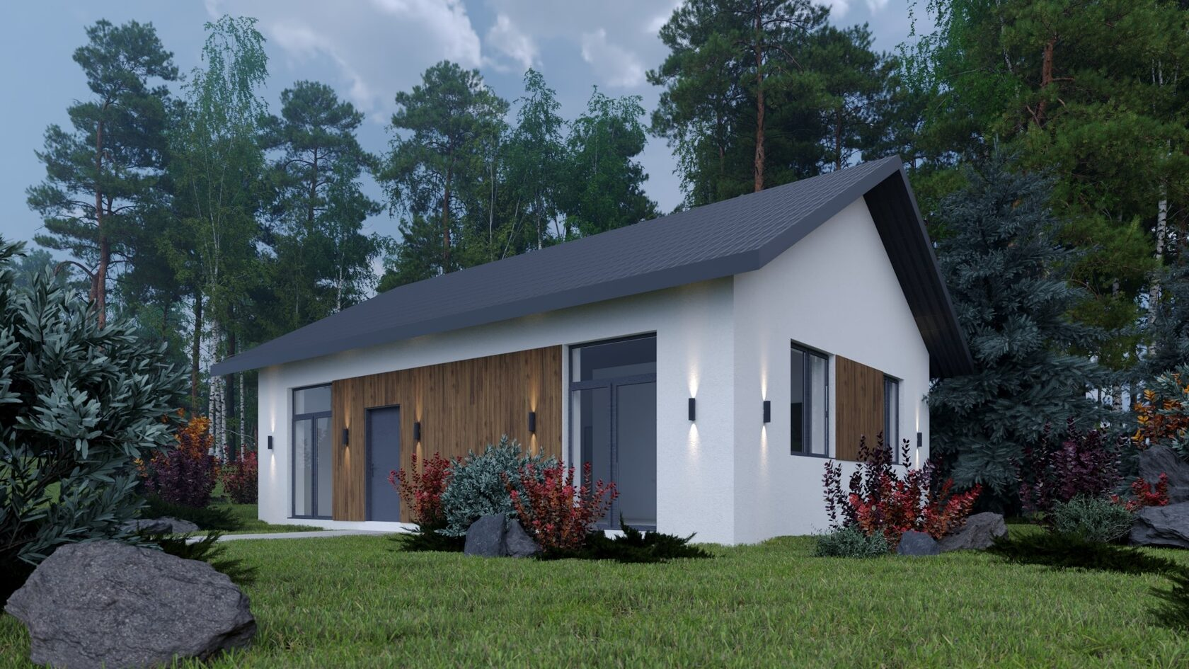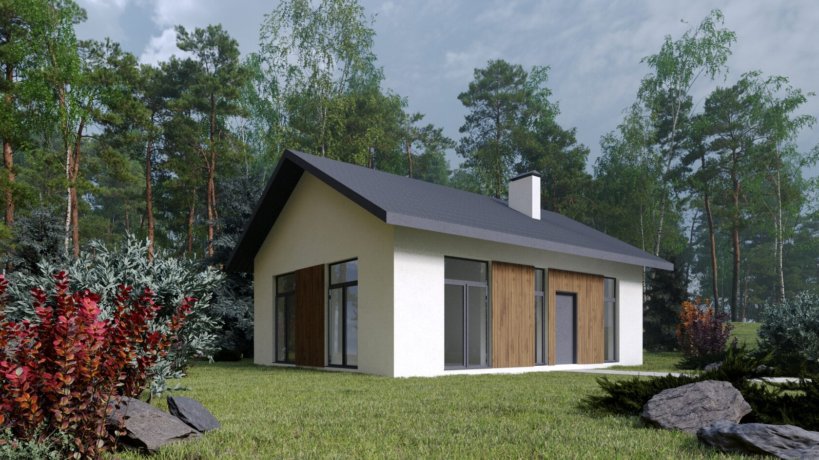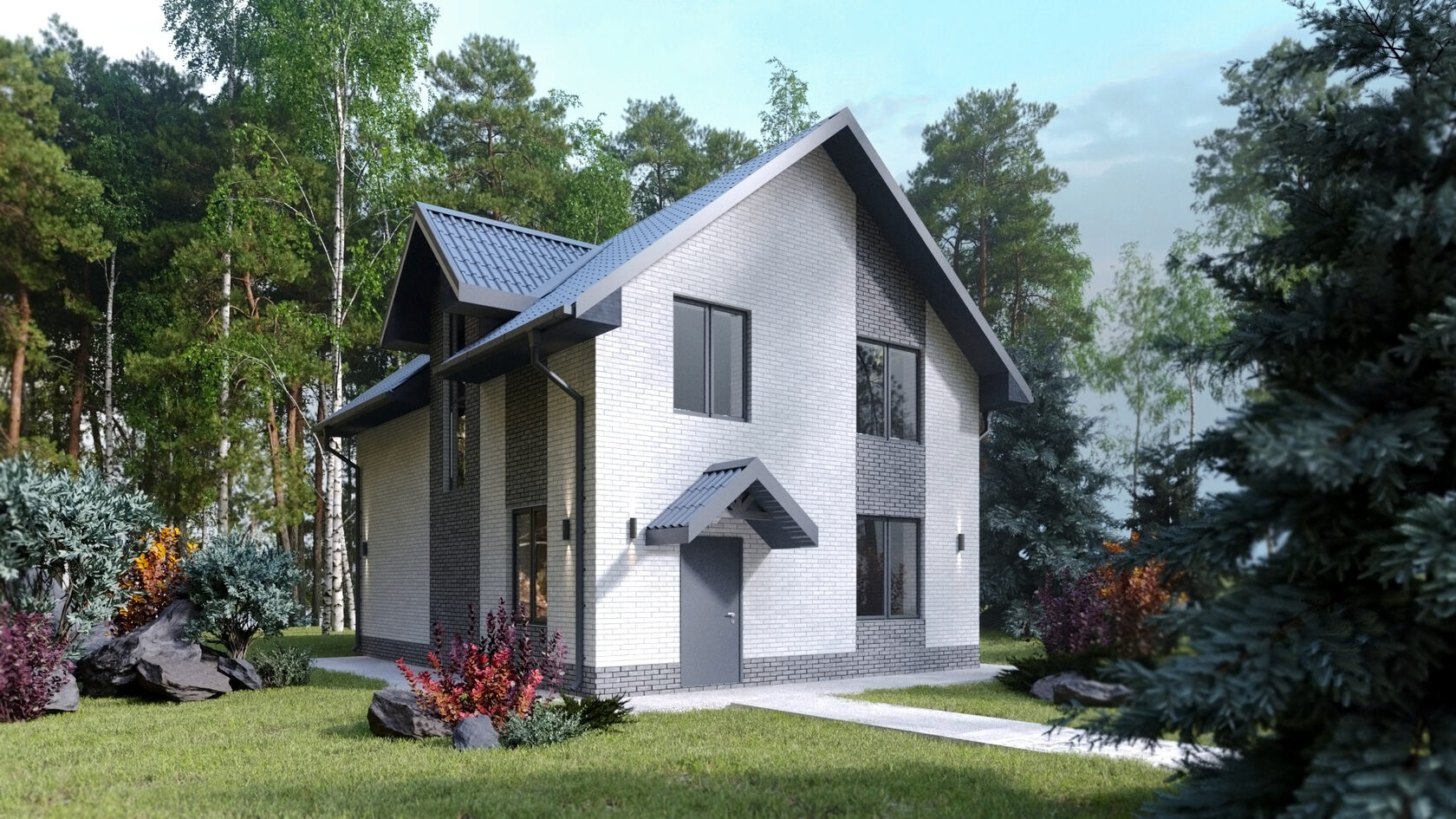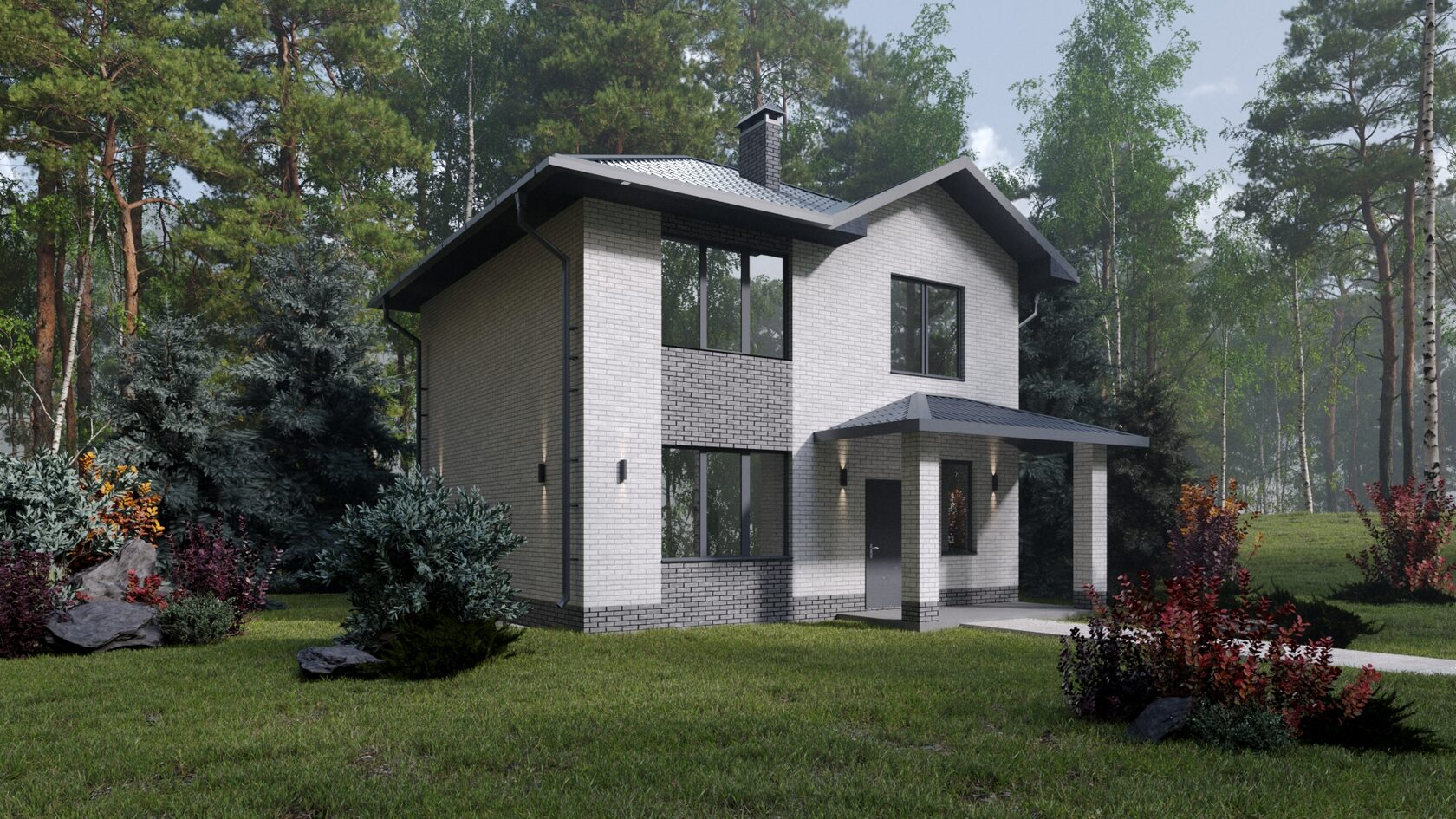 В коттеджном поселке предлагаются участки с обязательным подрядом на строительство дома. Вид разрешенного использования земли — ИЖС, возможно оформление постоянной регистрации. В проекте представлены коттеджи высотой 1 и 2 этажа. Дома возводятся из газобетона или кирпича, фасады облицованы кирпичом.