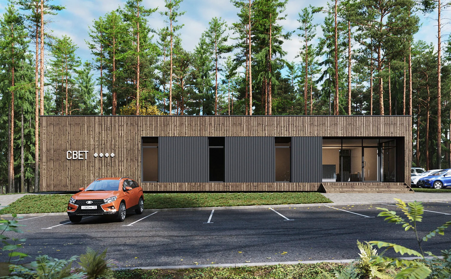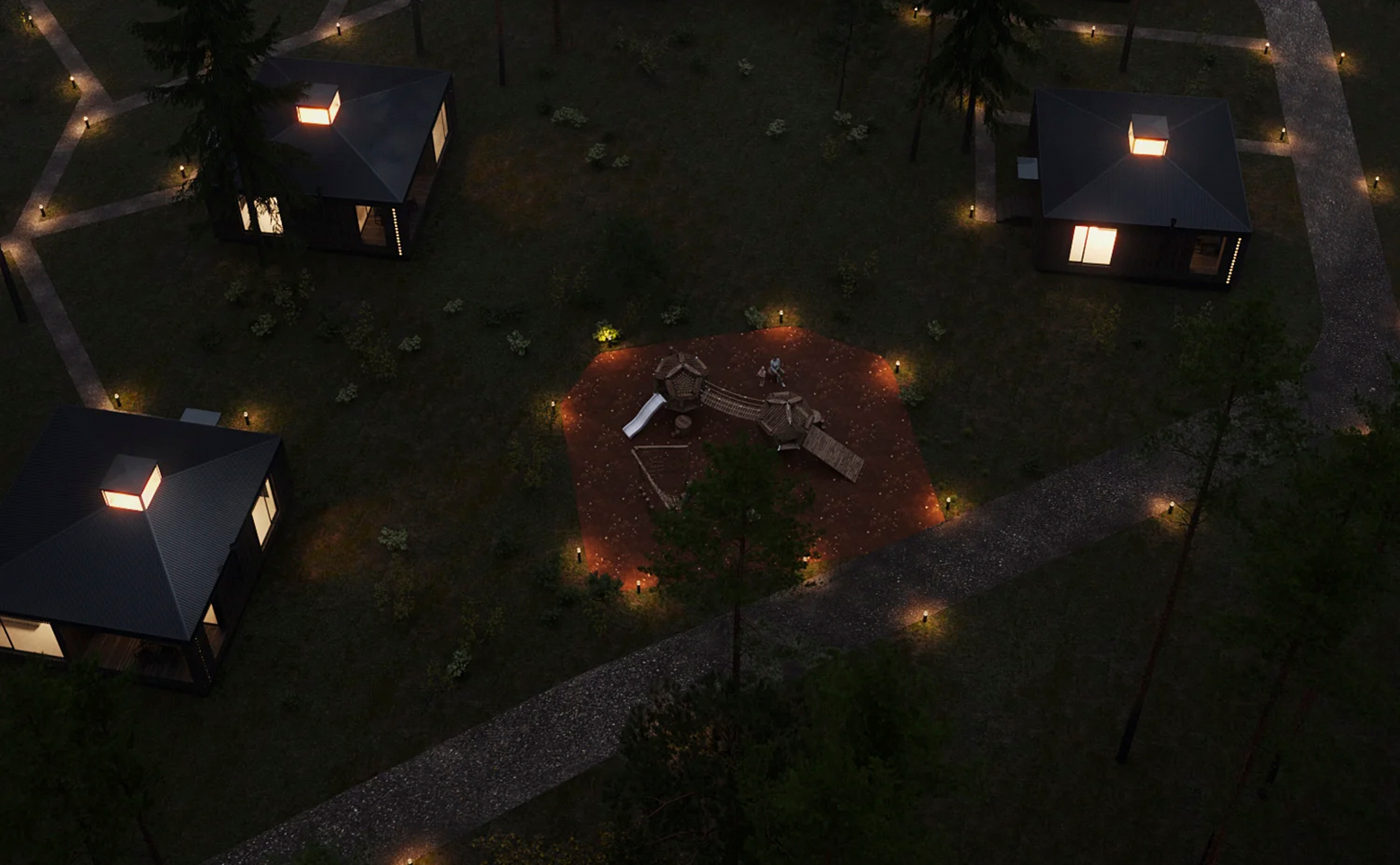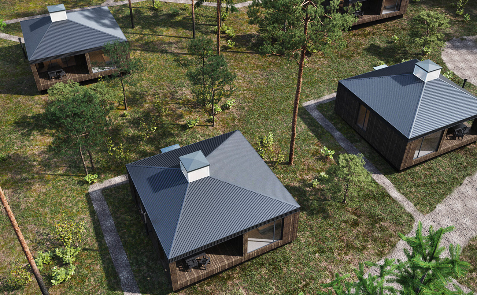 Коттеджный поселок состоит из 26 участков под индивидуальное жилищное строительство. Каждый участок предлагается с уже построенным домом, возведенным по каркасной технологии с отделкой фасадов деревом. Архитектурная концепция вдохновлена русскими избами, клетями и часовнями. Характерная деталь — верхний световой фонарь, который днем обеспечивает естественное освещение внутренних помещений, а вечером служит наружным источником света.
