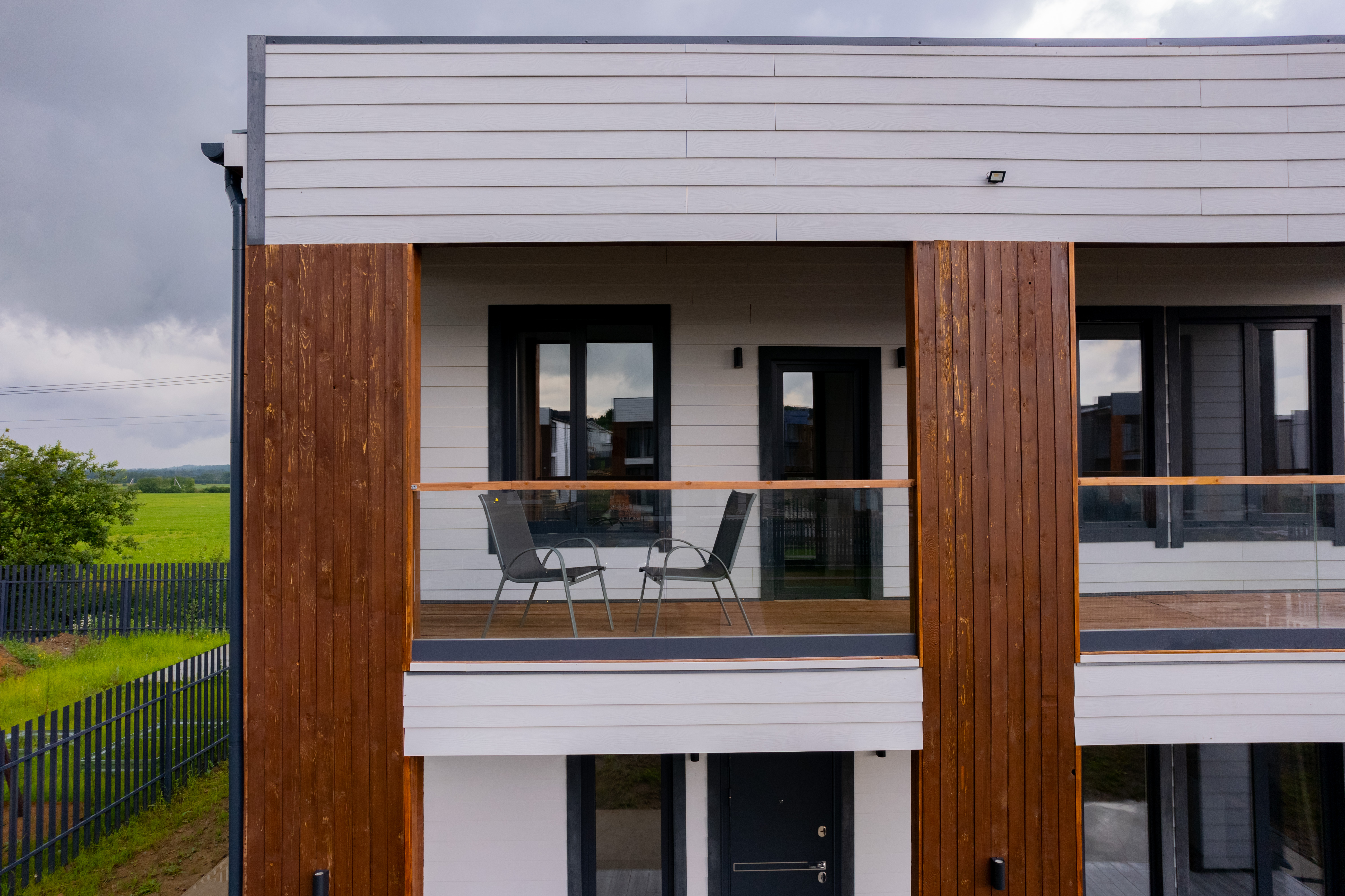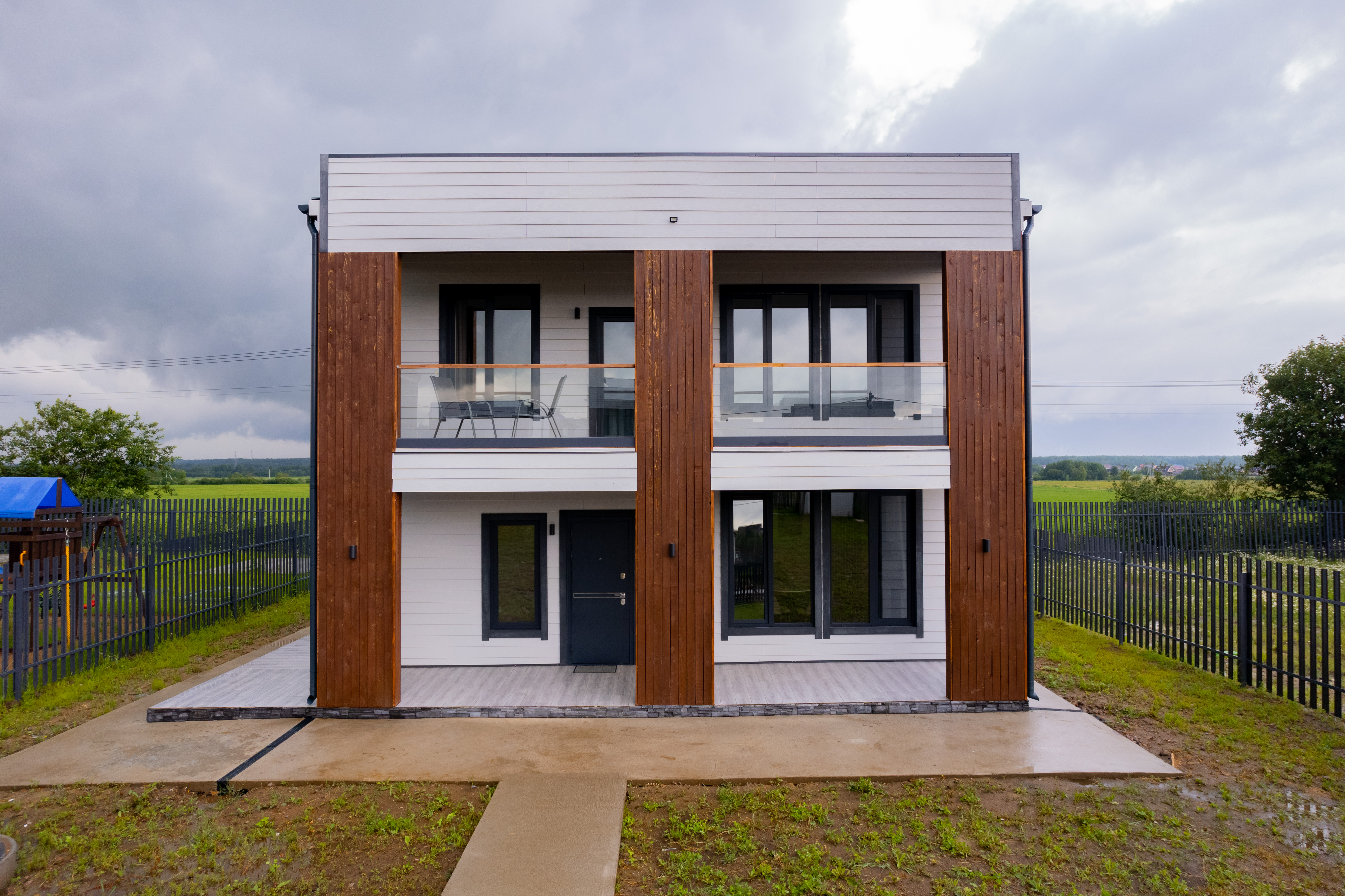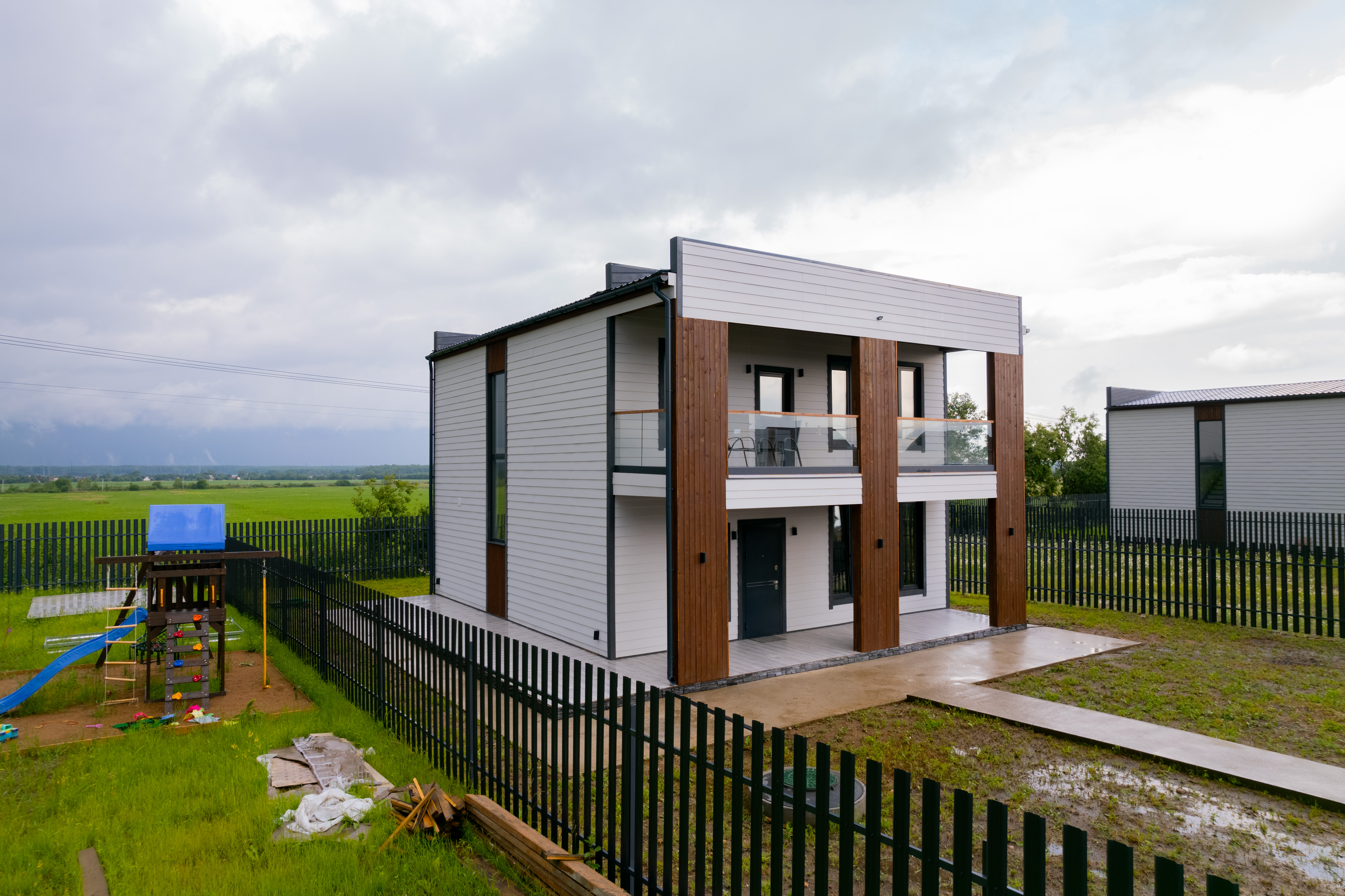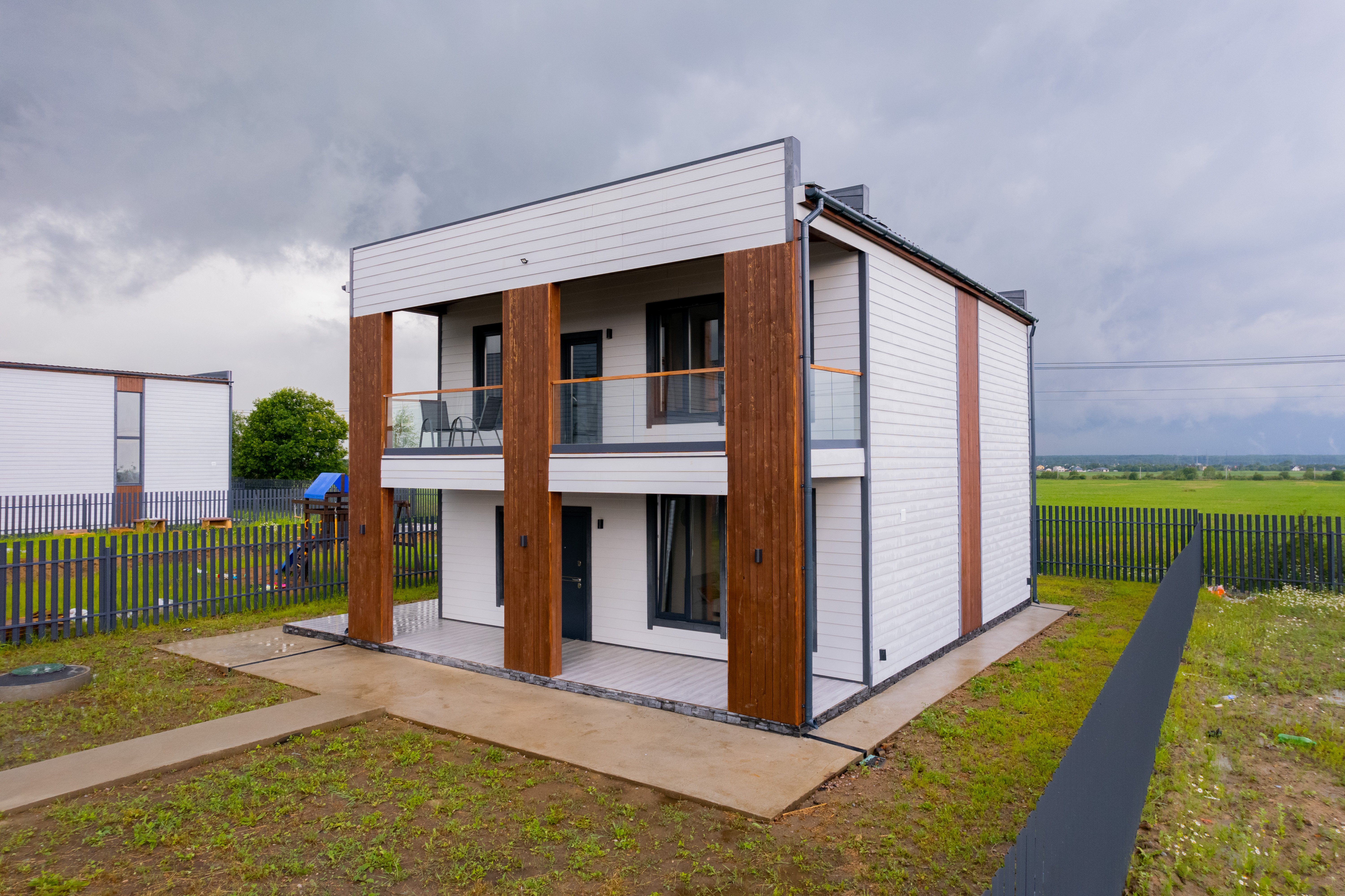 Коттеджный поселок представляет собой современный проект, возведенный по технологии каркасного строительства с использованием панельных фасадов.