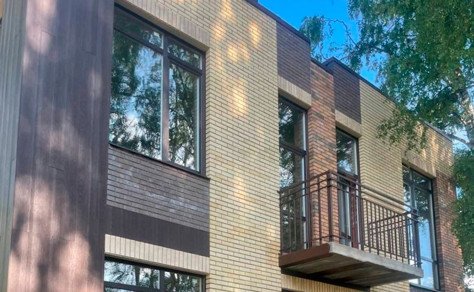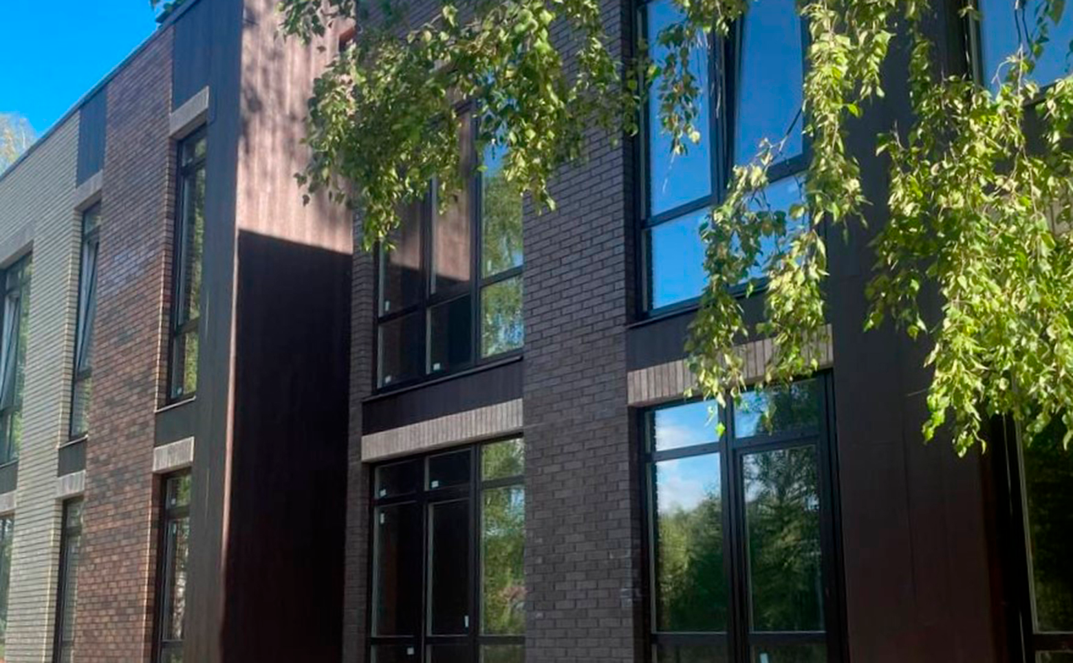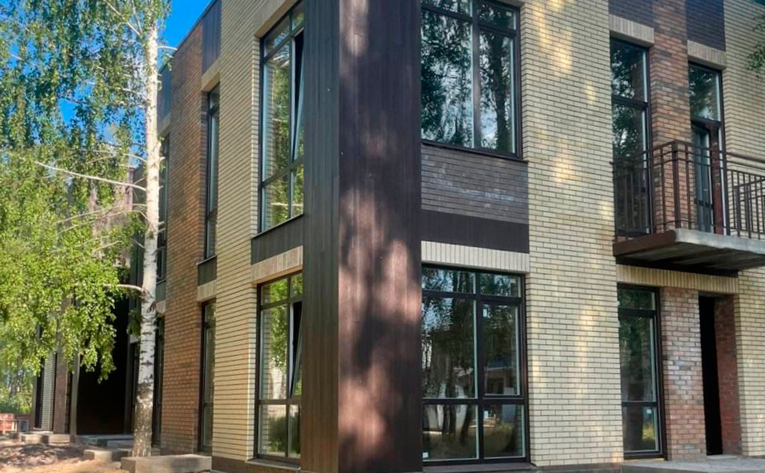Коттеджный поселок включает в себя двухэтажные таунхаусы, объединенные общей территорией и инфраструктурой. Дома возведены по долговечной кирпичной технологии строительства. Фасады домов облицованы кирпичом и выполнены в едином европейском стиле.