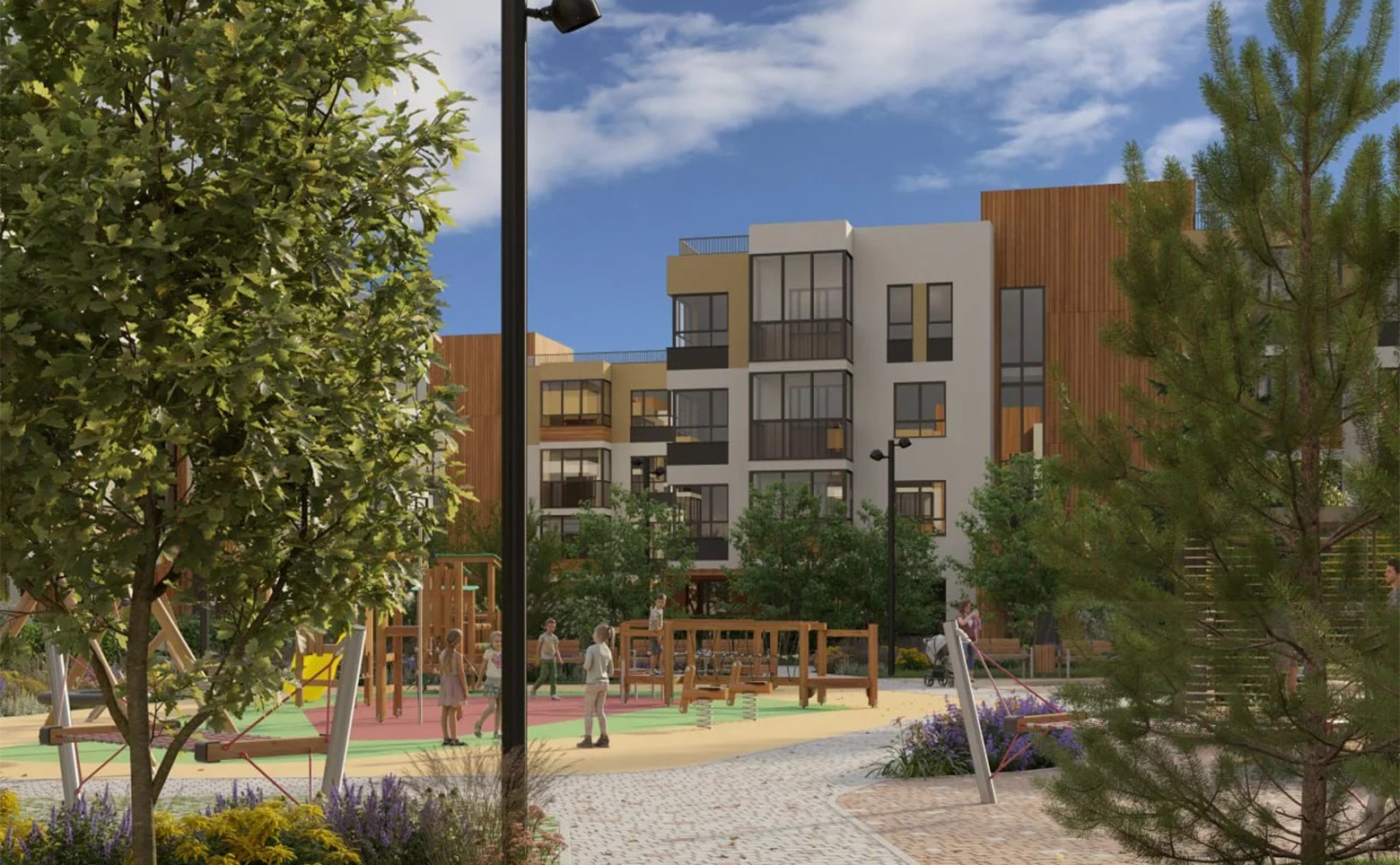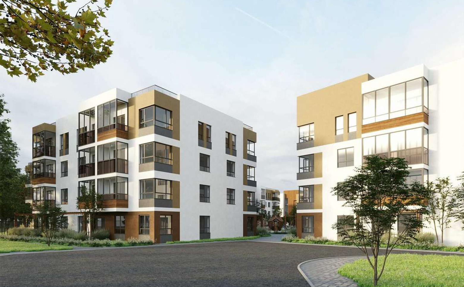 Новая малоэтажная застройка расположена в окружении густого леса, реки и озера. В проекте выполнено всесезонное озеленение. Обустроены детские и спортивные площадки. На территории жилого комплекса ведется видеонаблюдение. Для владельцев автомобилей предусмотрена стоянка.